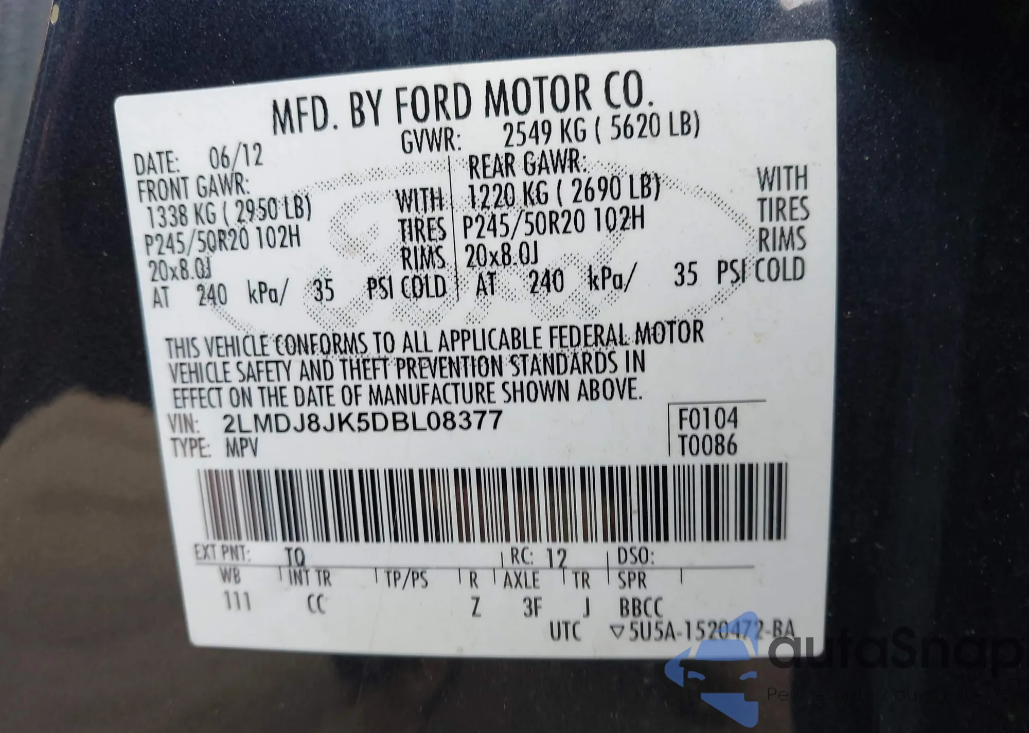 VIN: 2LMDJ8JK5DBL08377