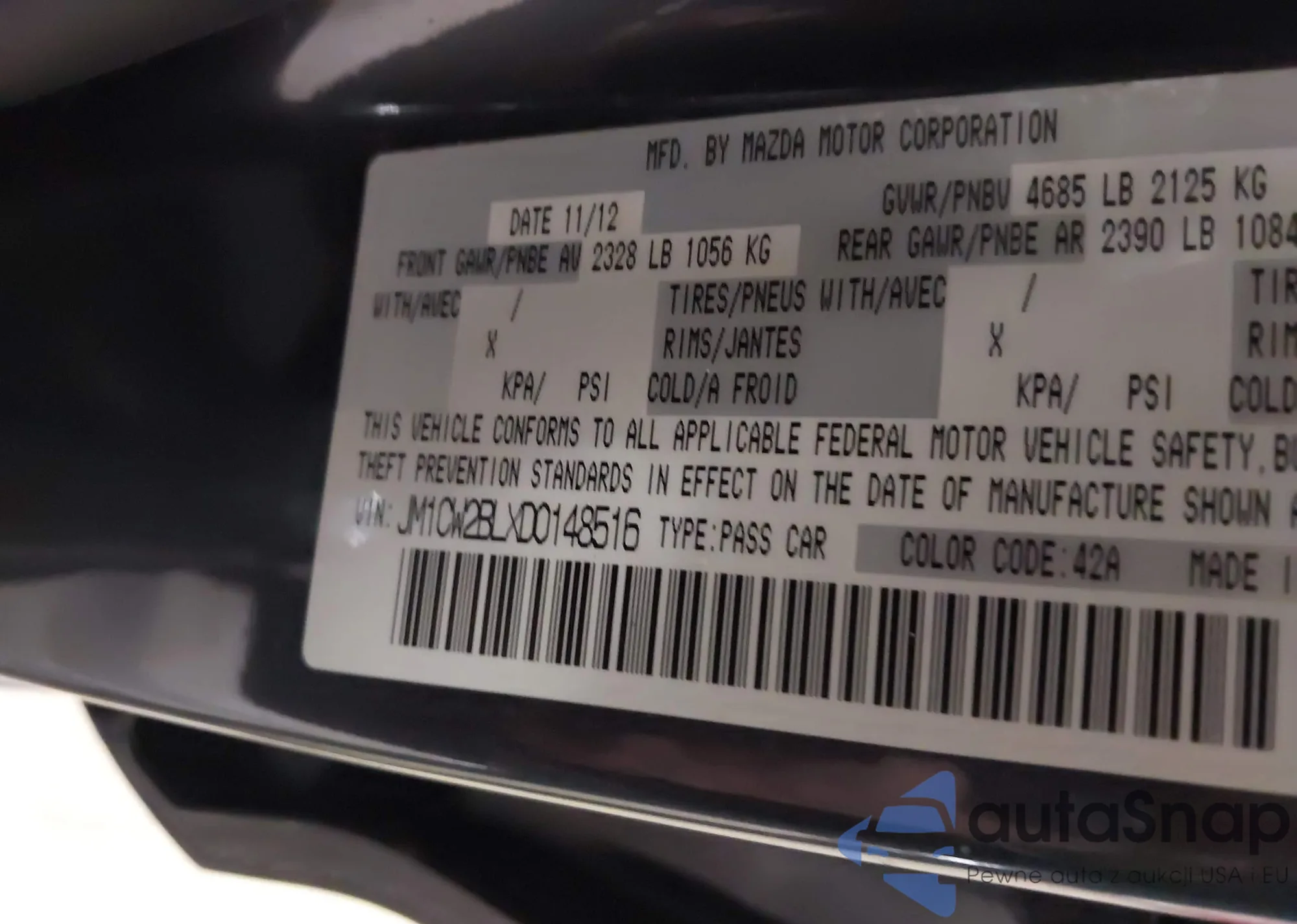 VIN: JM1CW2BLXD0148516