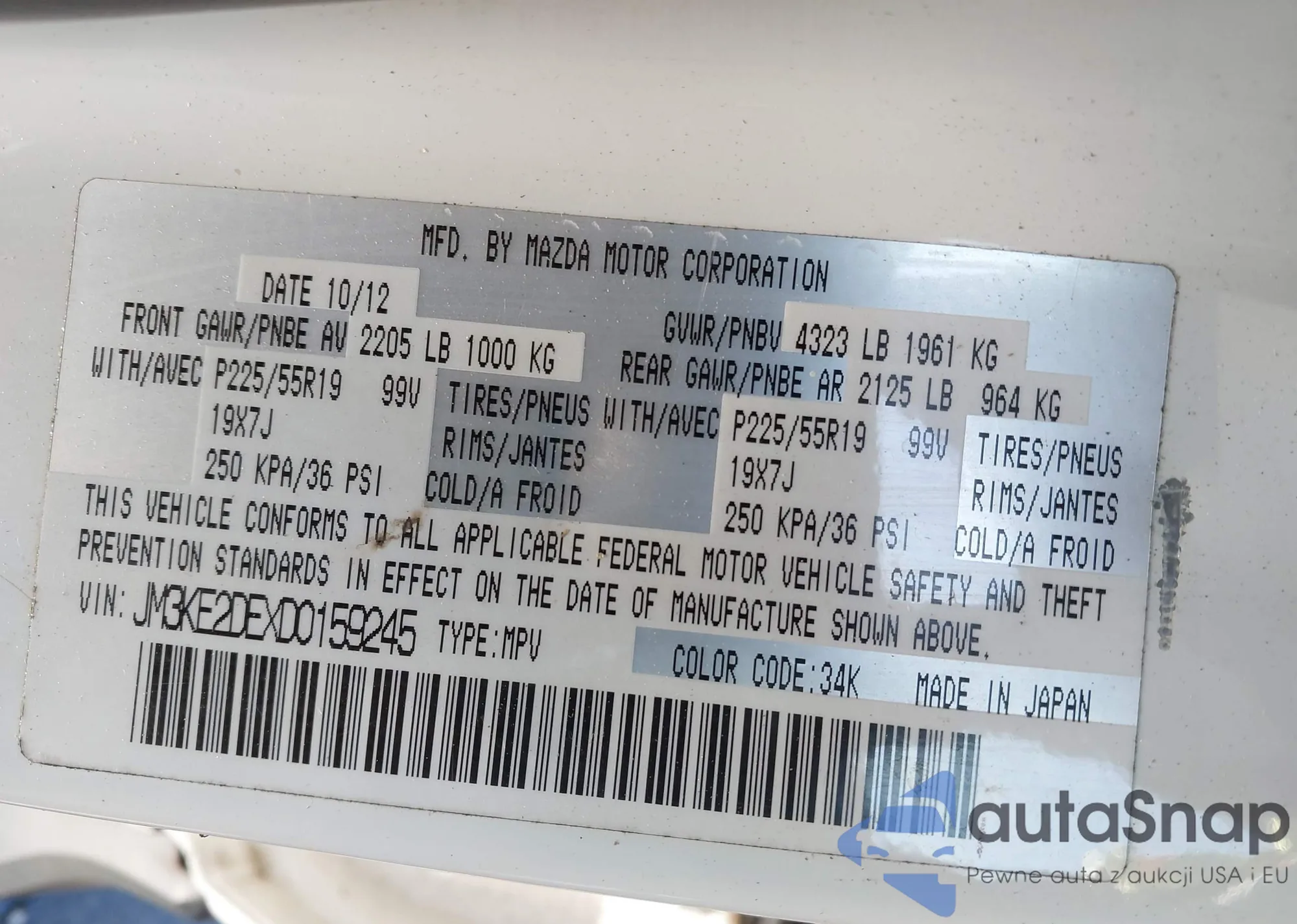 VIN: JM3KE2DEXD0159245