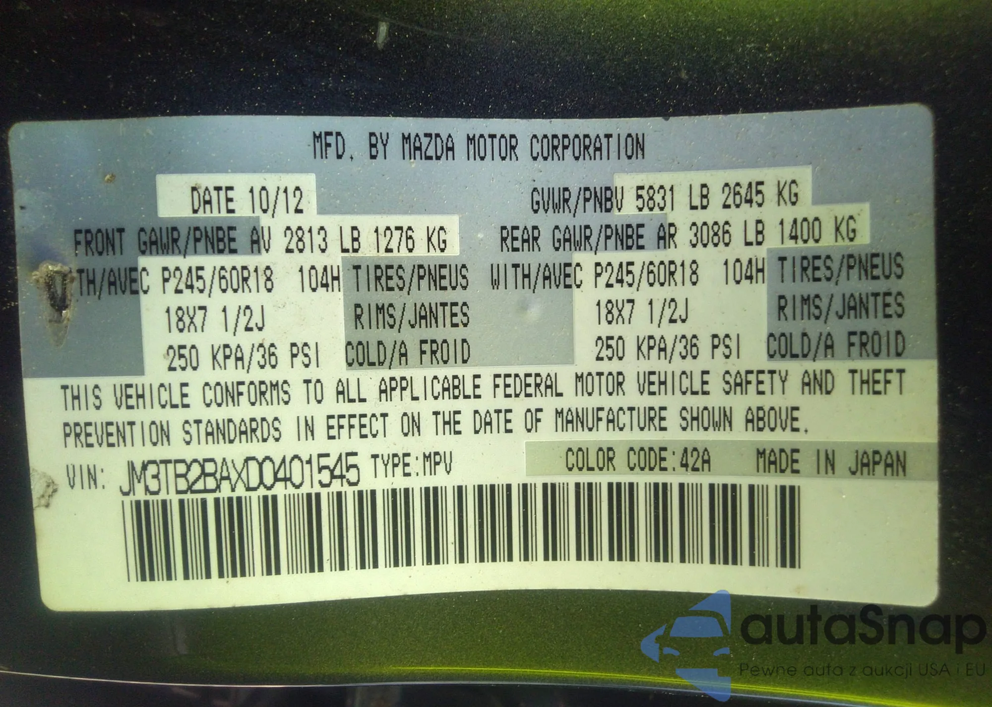 VIN: JM3TB2BAXD0401545