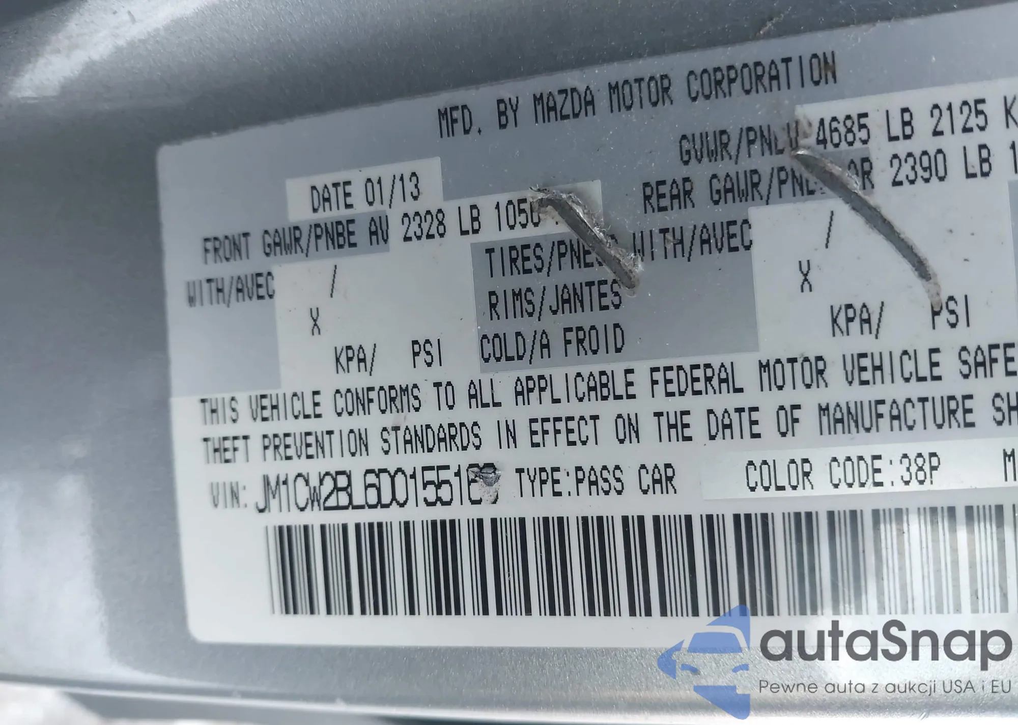 VIN: JM1CW2BL6D0155169
