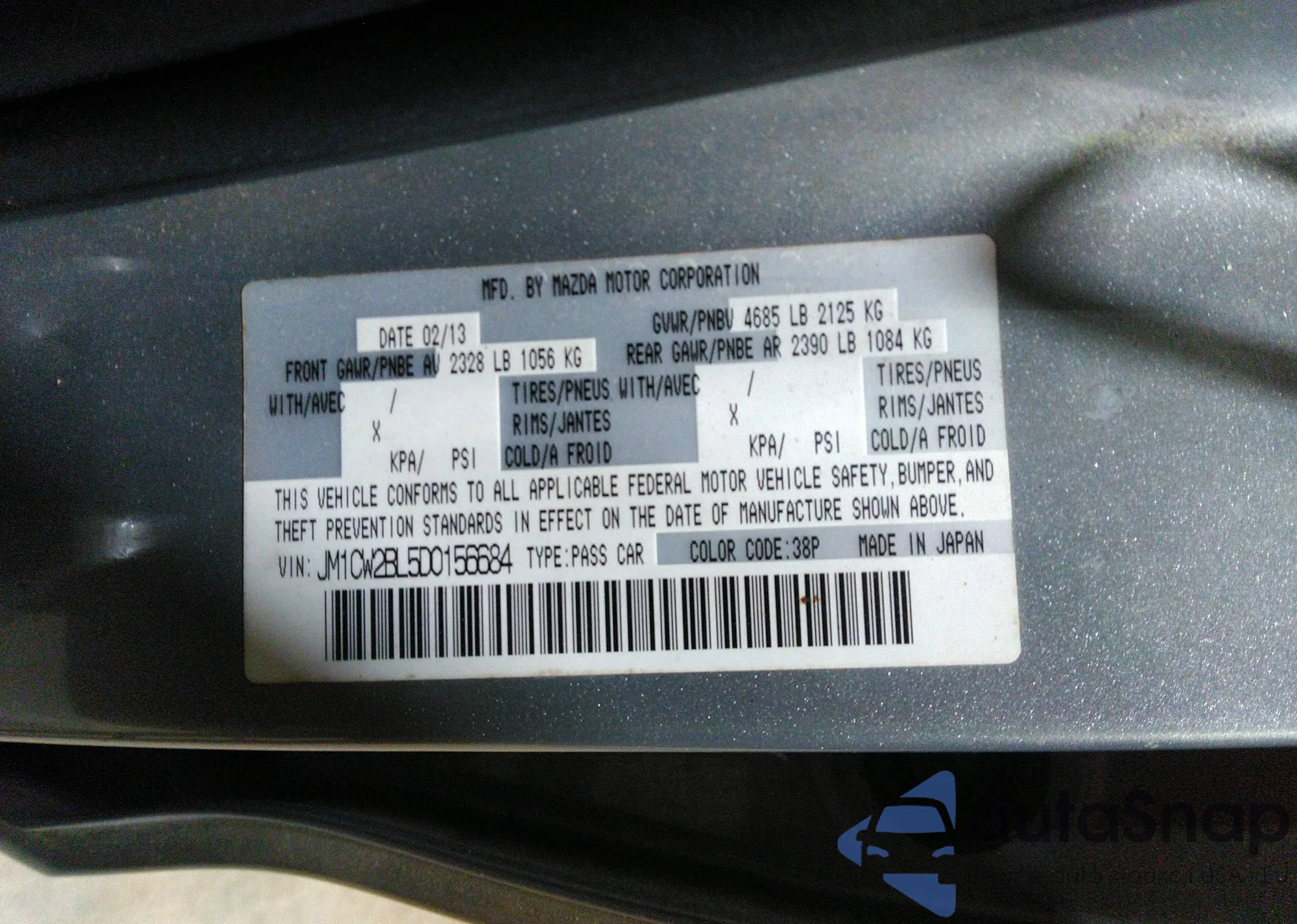 VIN: JM1CW2BL5D0156684