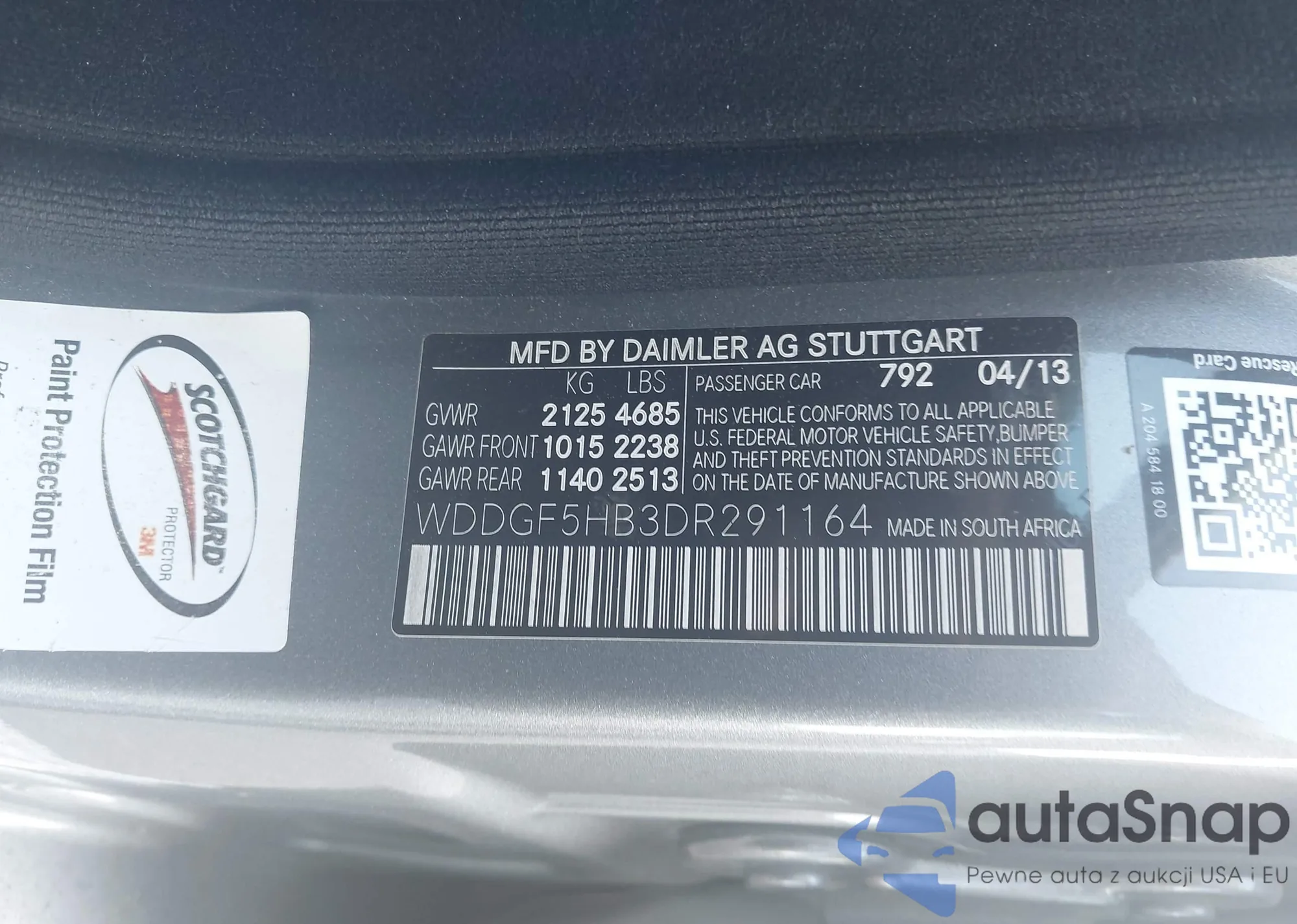 VIN: WDDGF5HB3DR291164