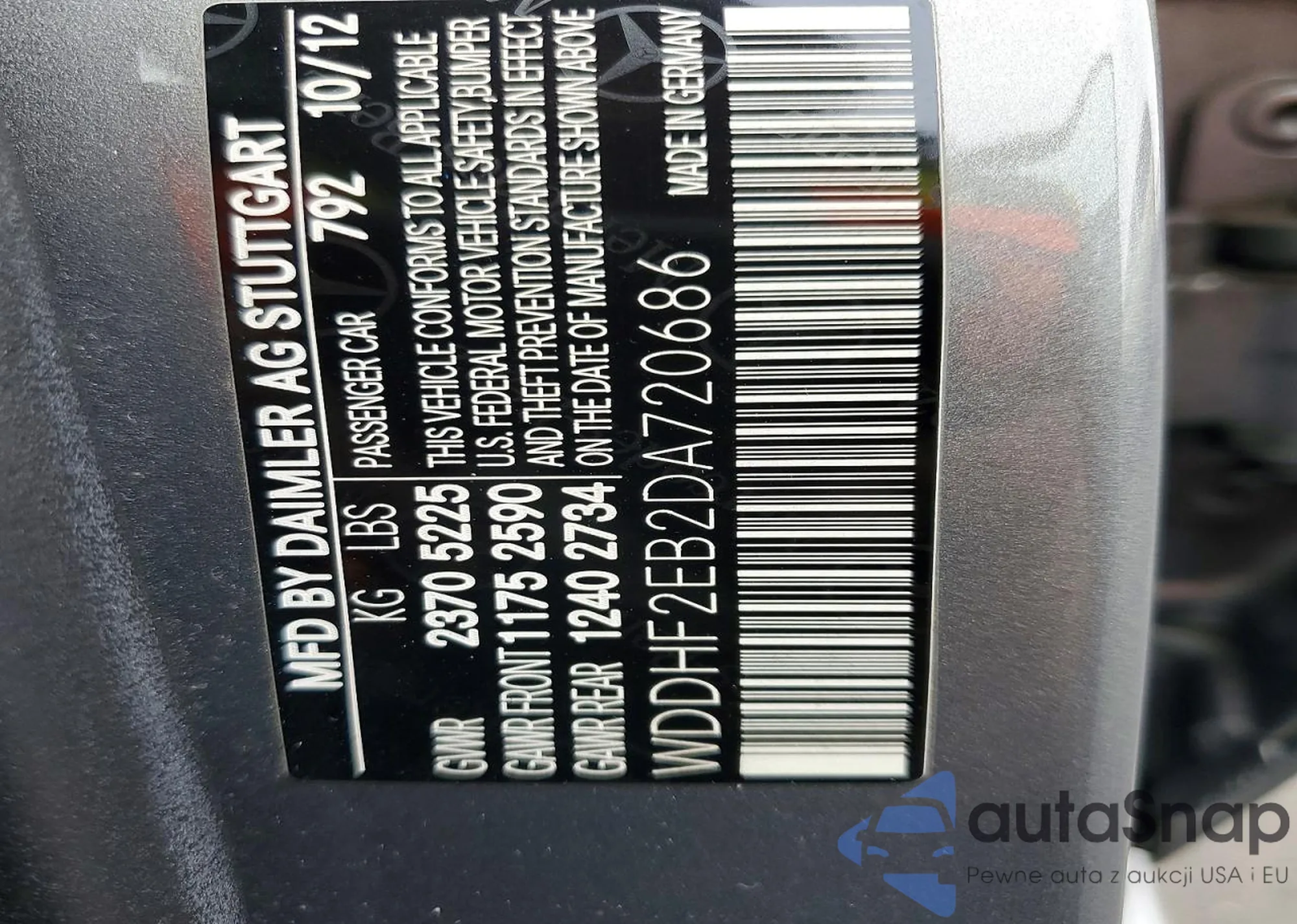 The car Mercedes-Benz E-klasse 2013 (VIN WDDHF2EB2DA720686) has not been auctioned before. The documents are clean, and the mileage matches or is below the market average. Sold by an insurance company – we recommend purchase. Delivery to the port will take approx. 6–8 weeks.