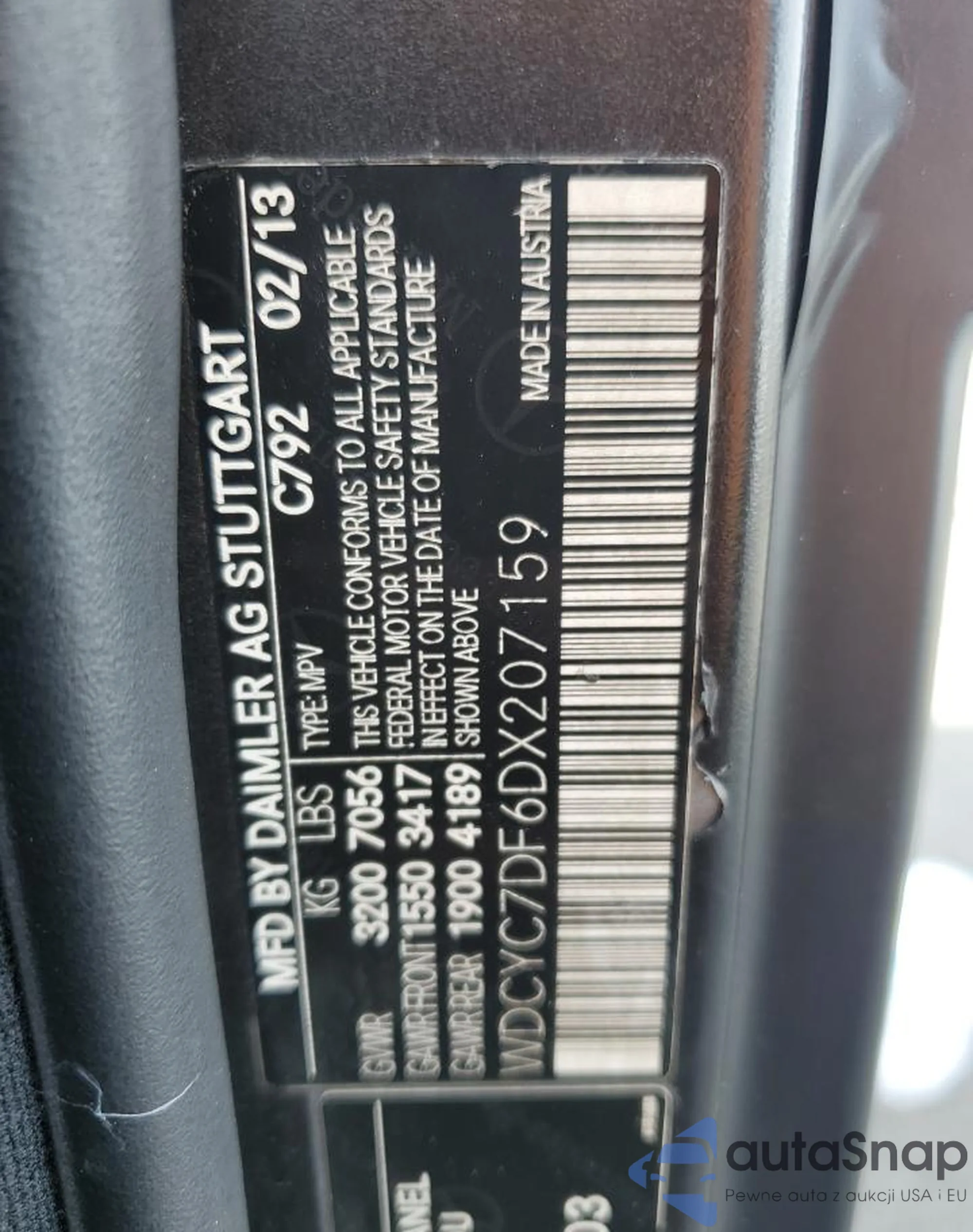 VIN: WDCYC7DF6DX207159