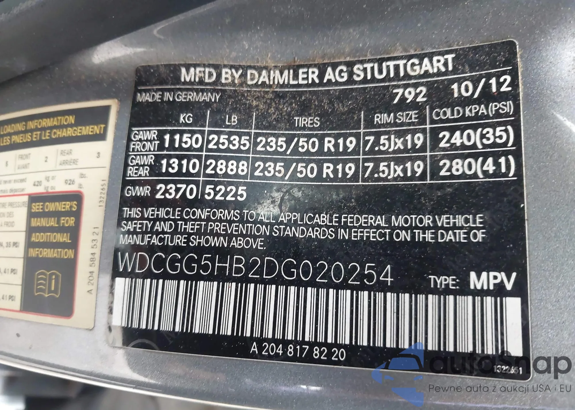 VIN: WDCGG5HB2DG020254