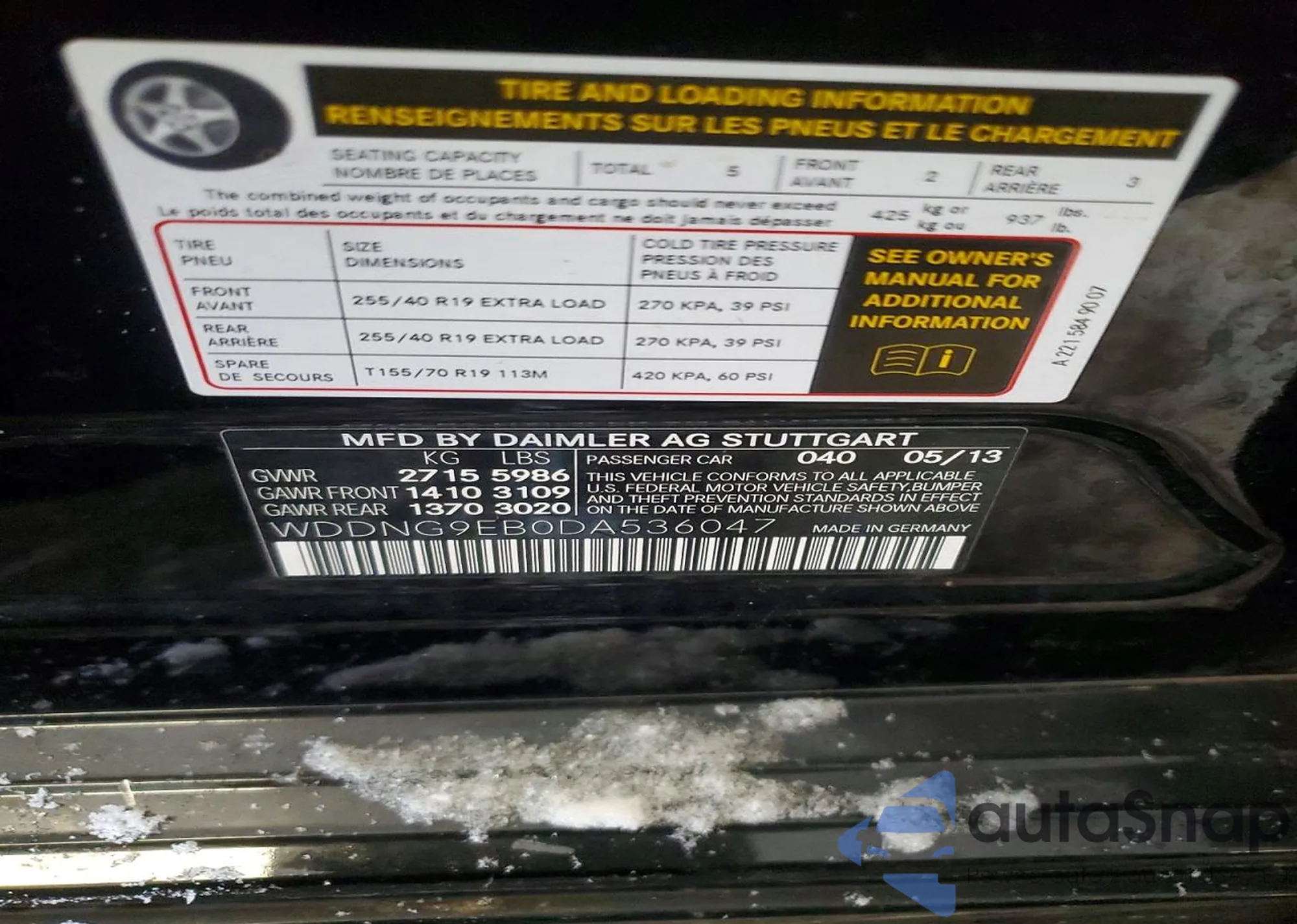 The car Mercedes-Benz S-klasse 2013 (VIN WDDNG9EB0DA536047) is sold by an unverified seller. We recommend checking the Carfax report and confirming registration possibilities before purchase.