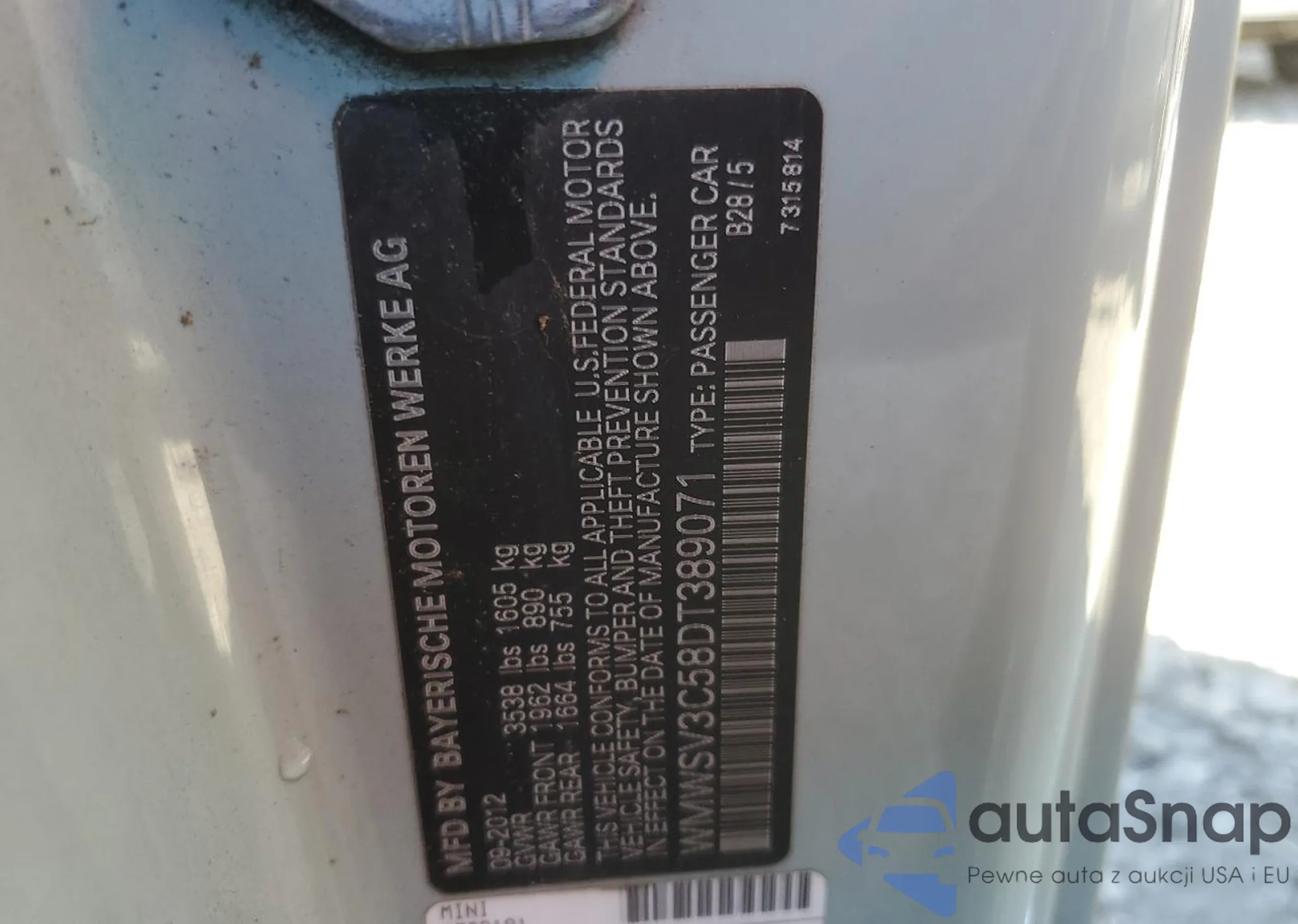 VIN: WMWSV3C58DT389071