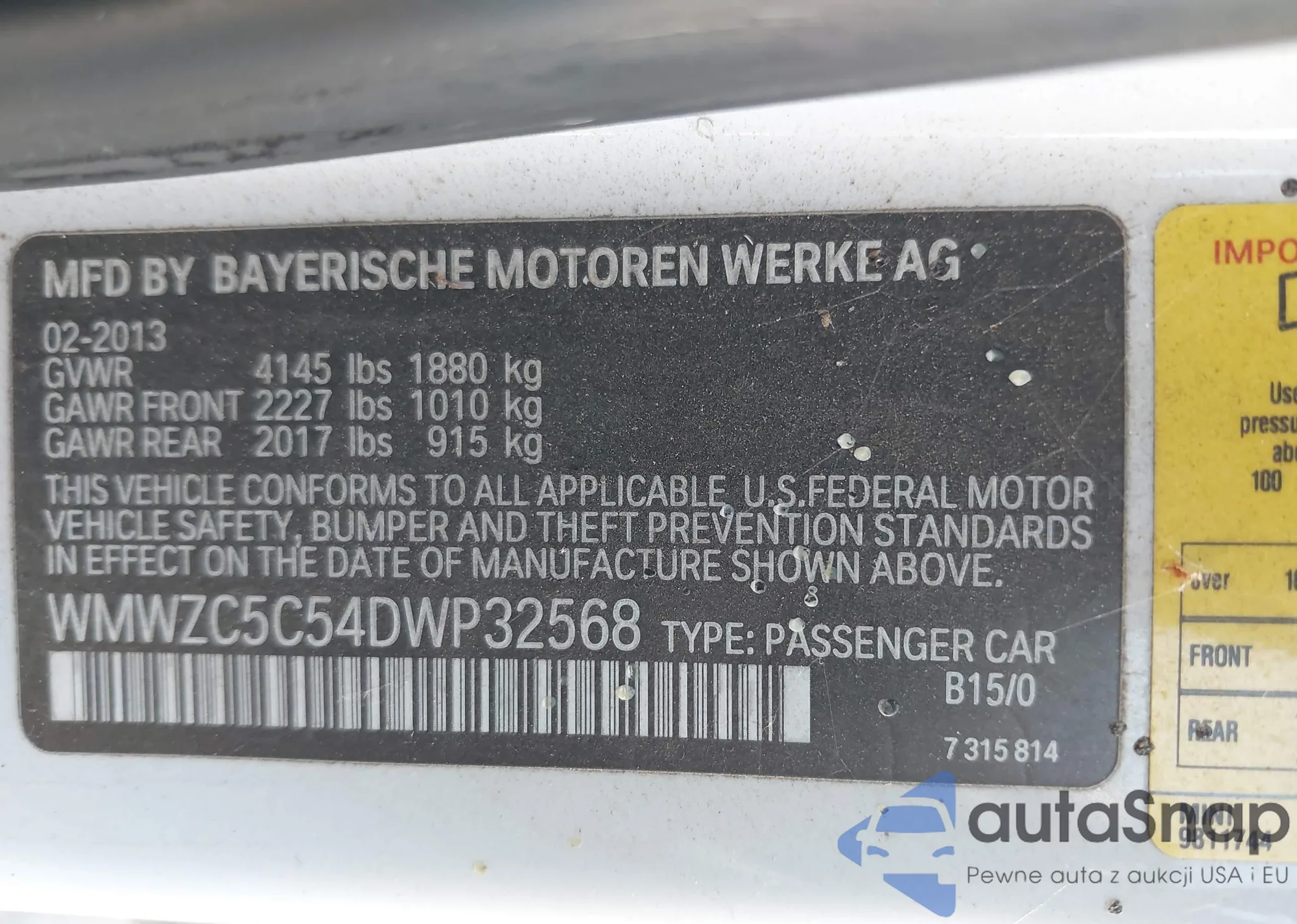 VIN: WMWZC5C54DWP32568