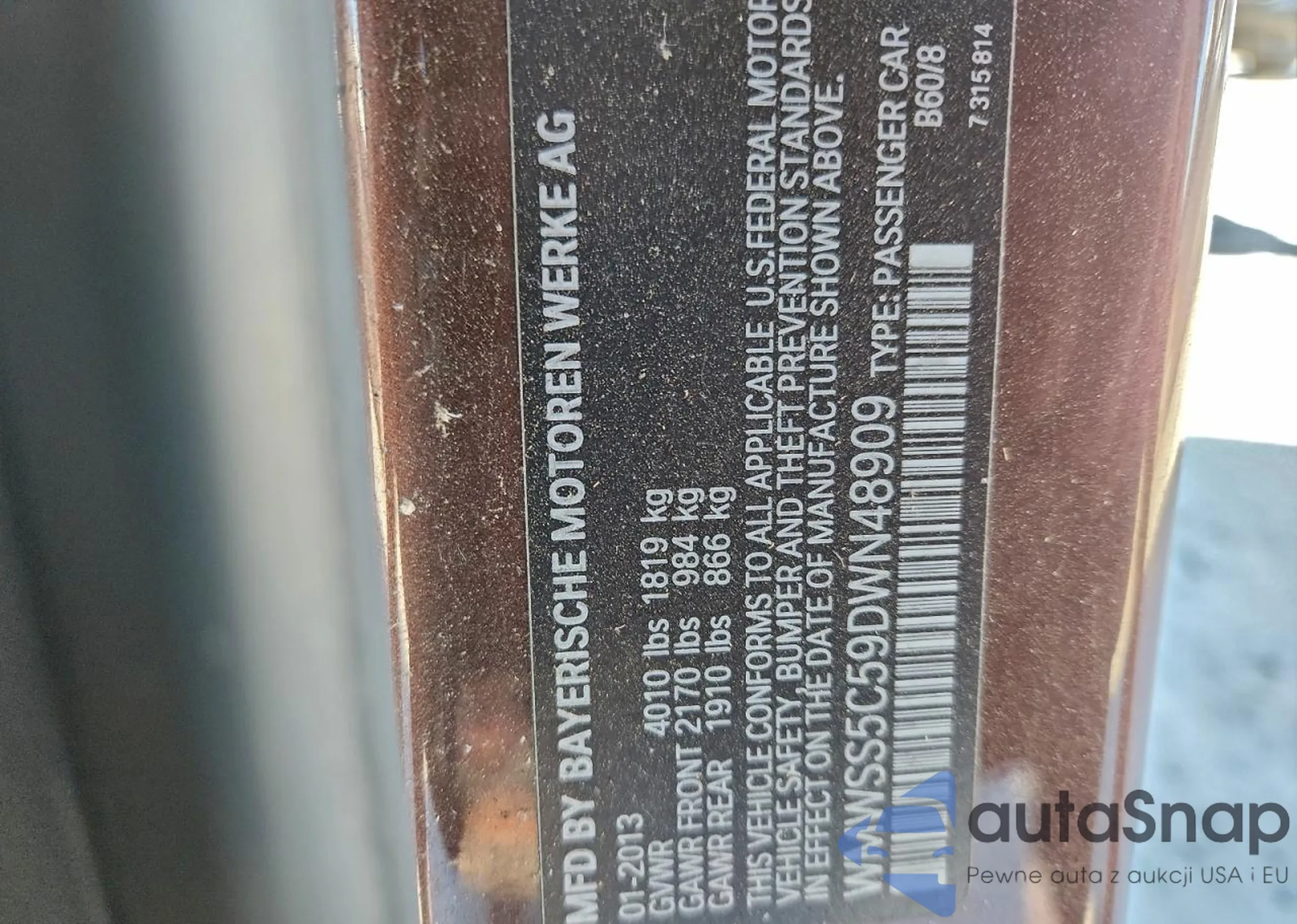 VIN: WMWSS5C59DWN48909