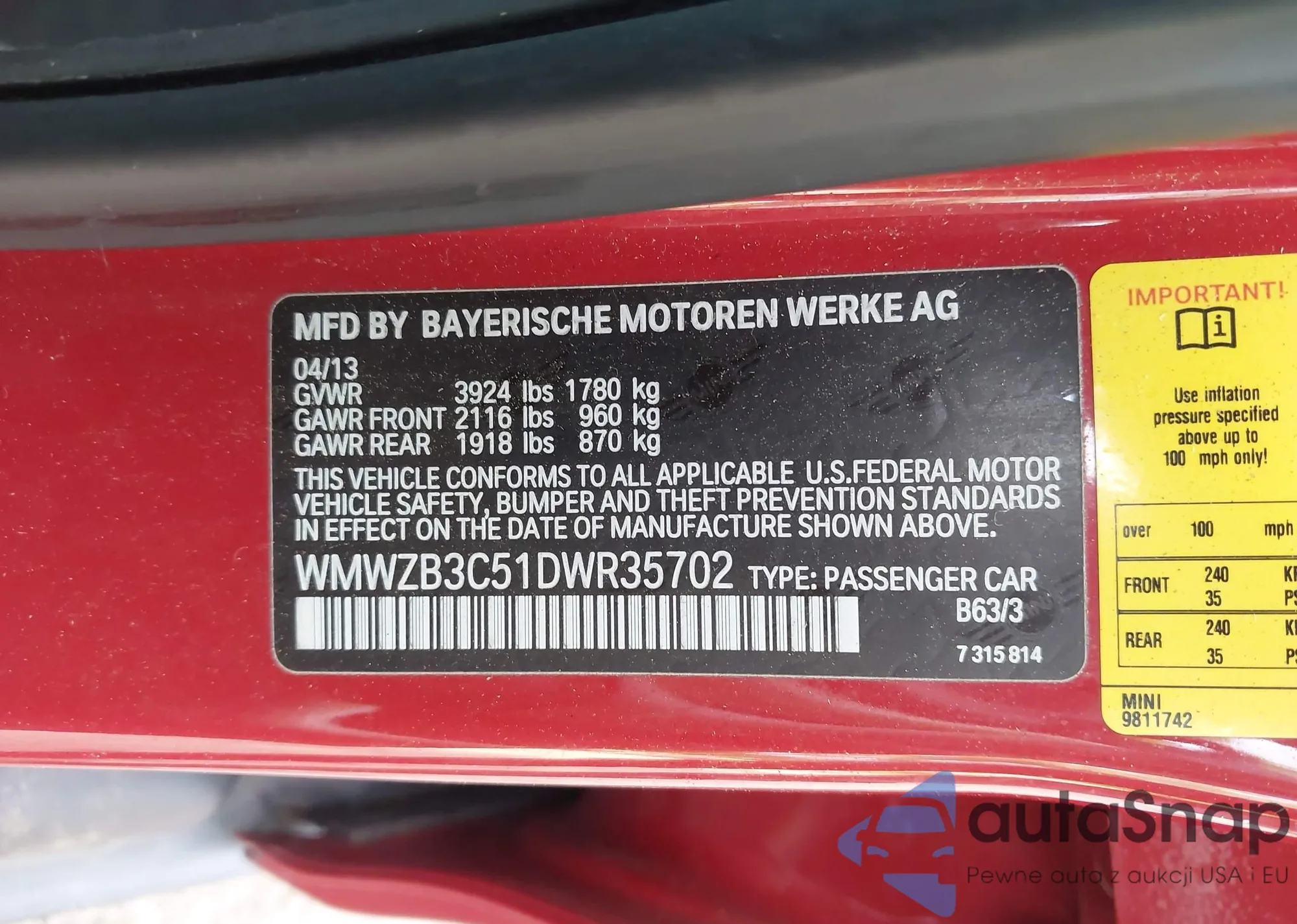 VIN: WMWZB3C51DWR35702