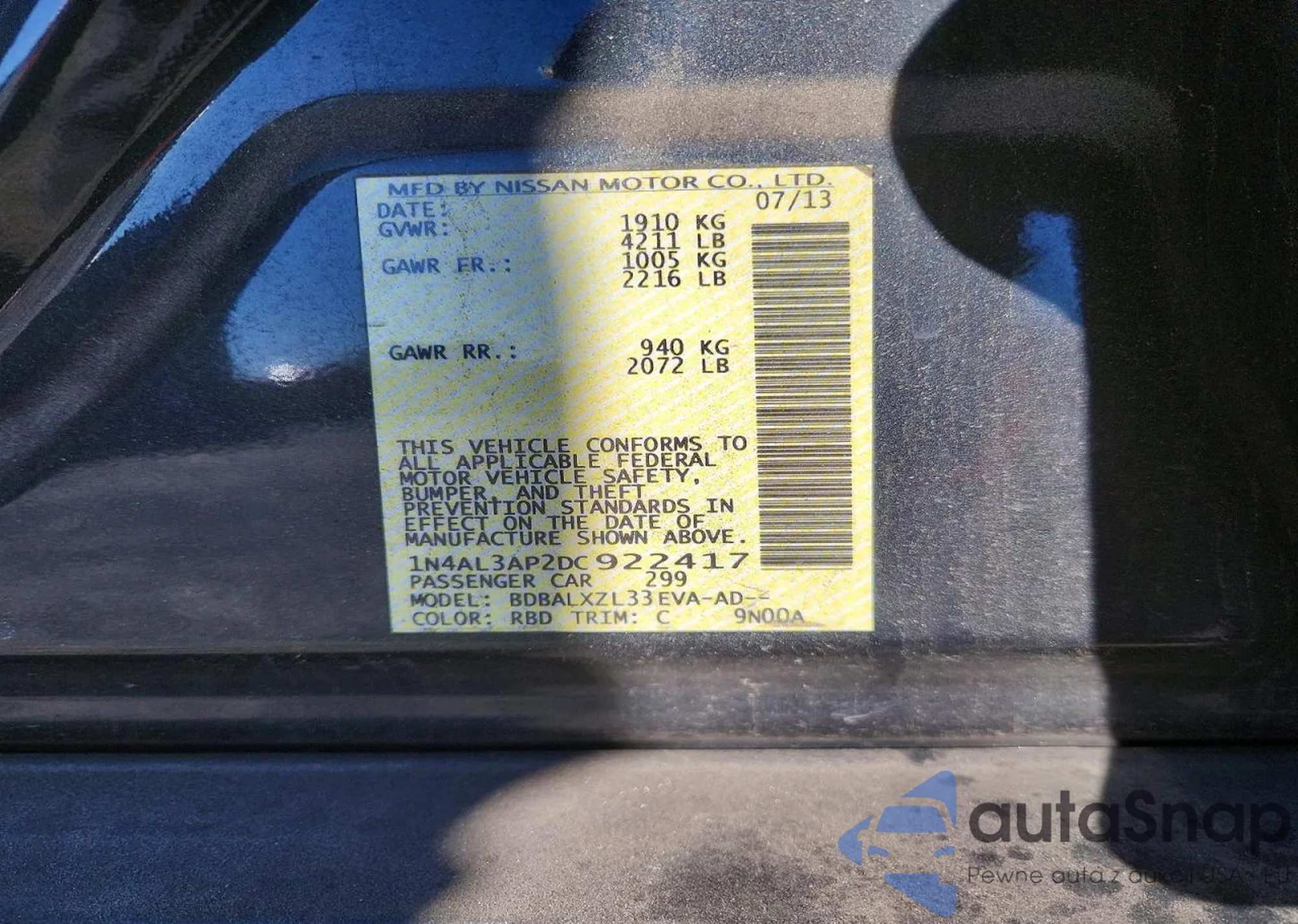 VIN: 1N4AL3AP2DC922417
