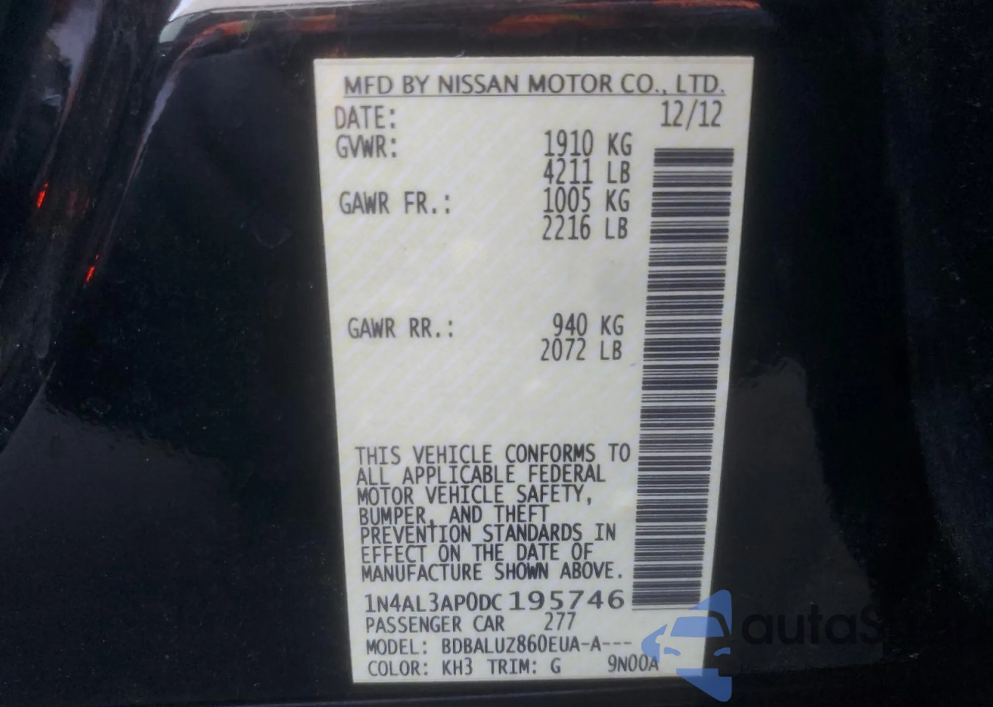 VIN: 1N4AL3AP0DC195746
