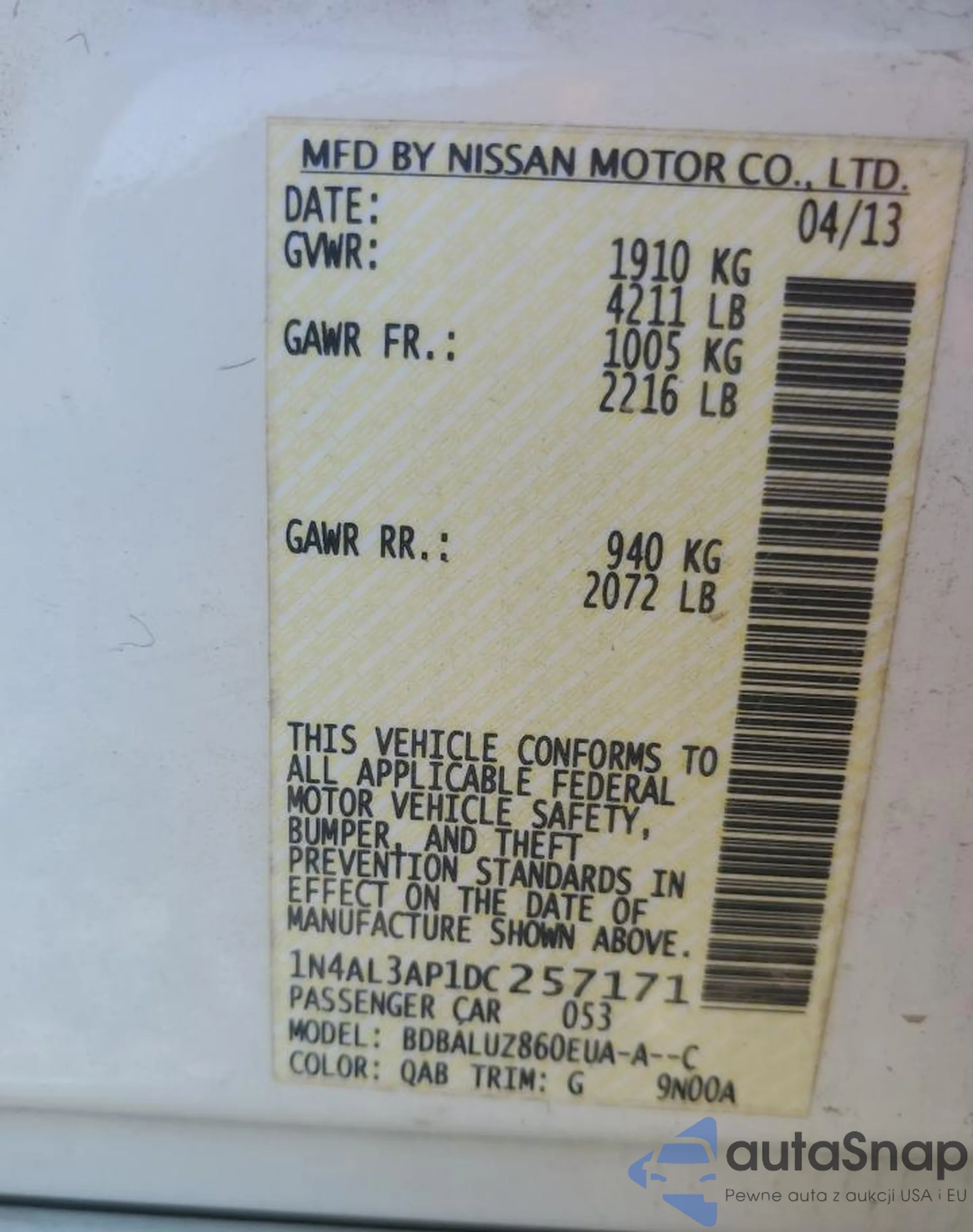 VIN: 1N4AL3AP1DC257171