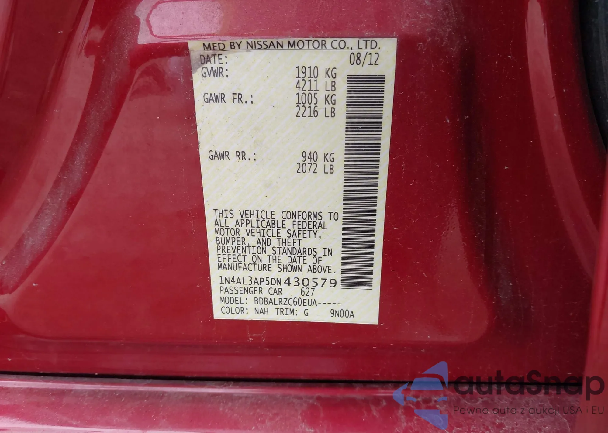 VIN: 1N4AL3AP5DN430579