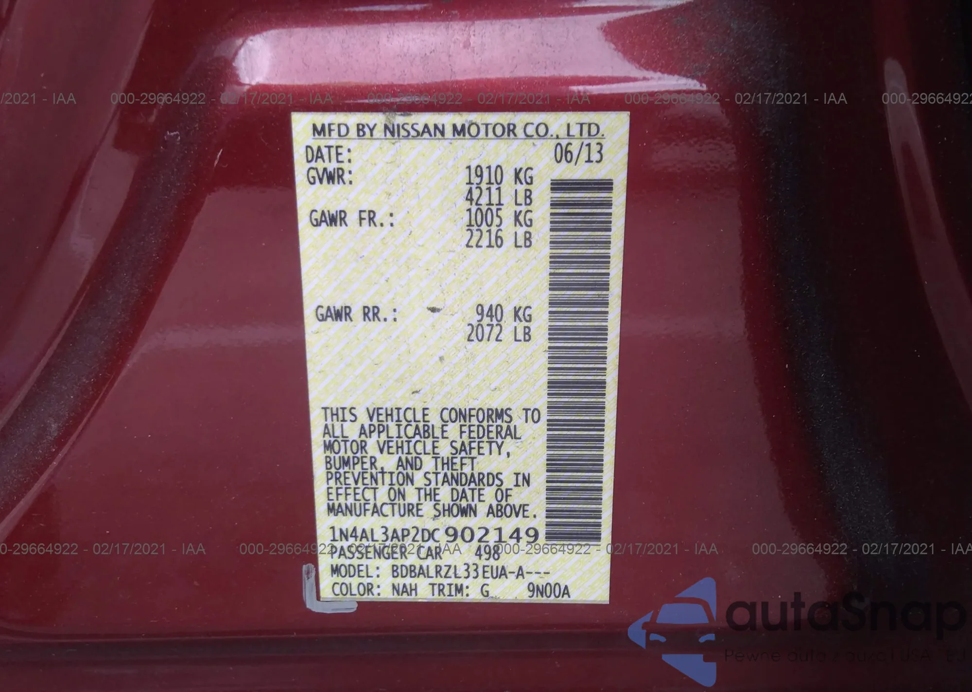VIN: 1N4AL3AP2DC902149