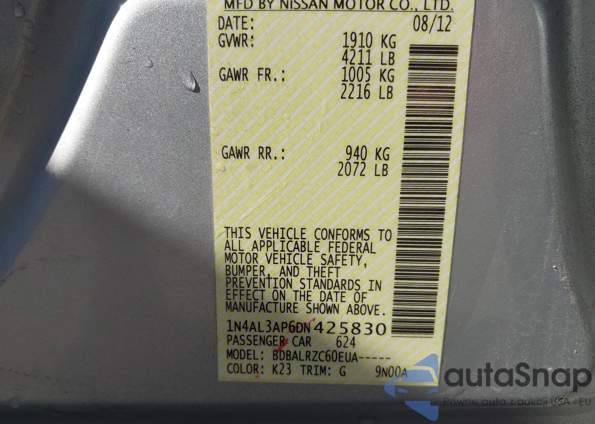 VIN: 1N4AL3AP6DN425830