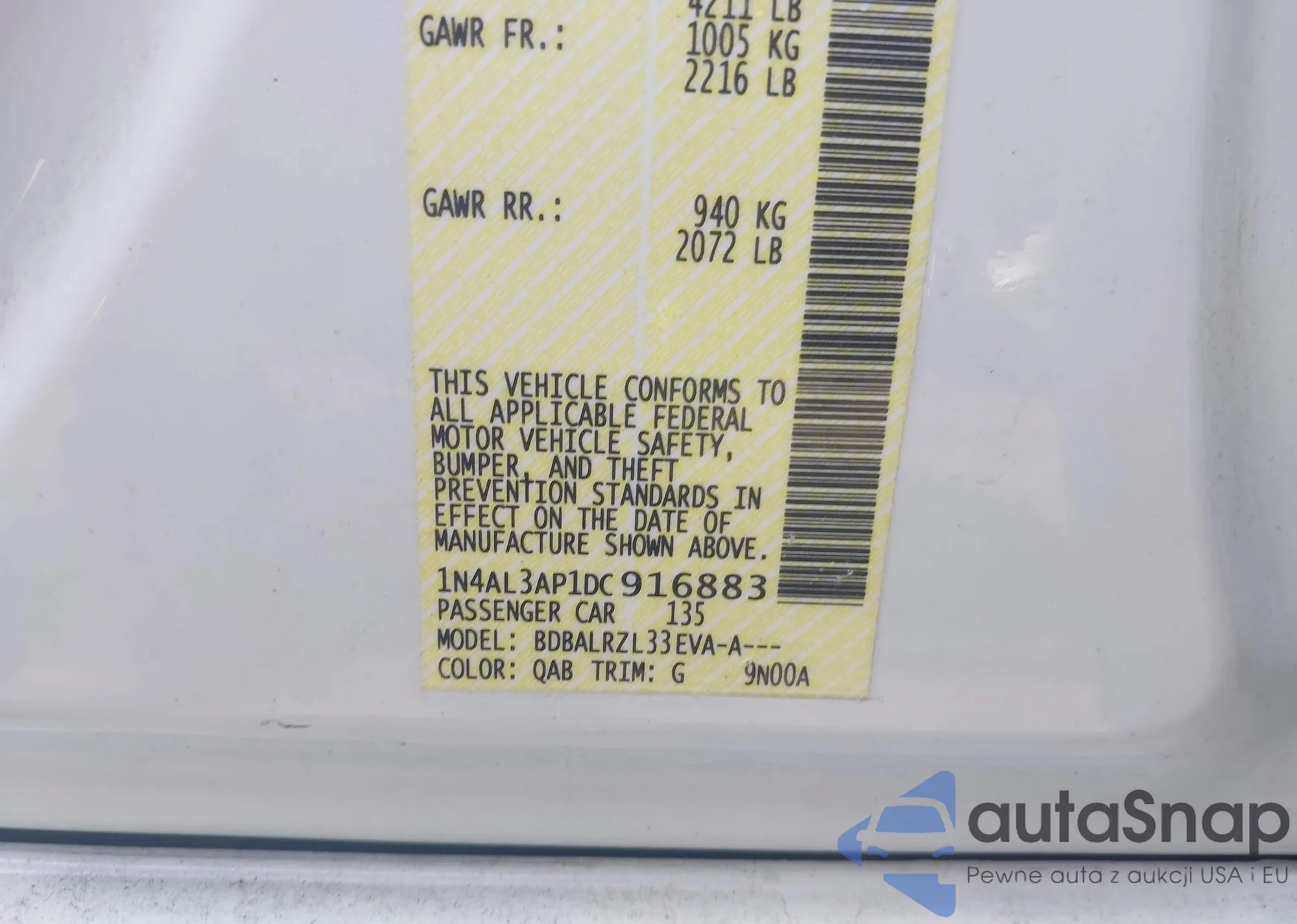 VIN: 1N4AL3AP1DC916883