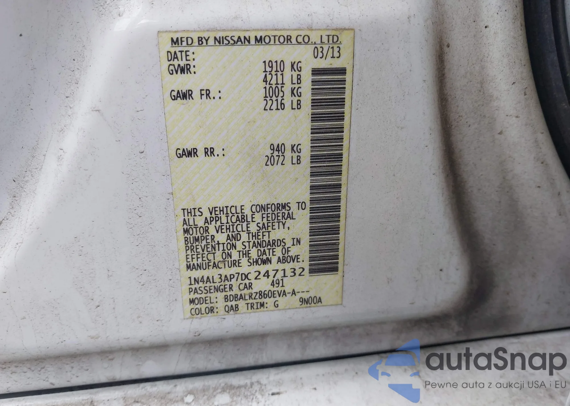 VIN: 1N4AL3AP7DC247132