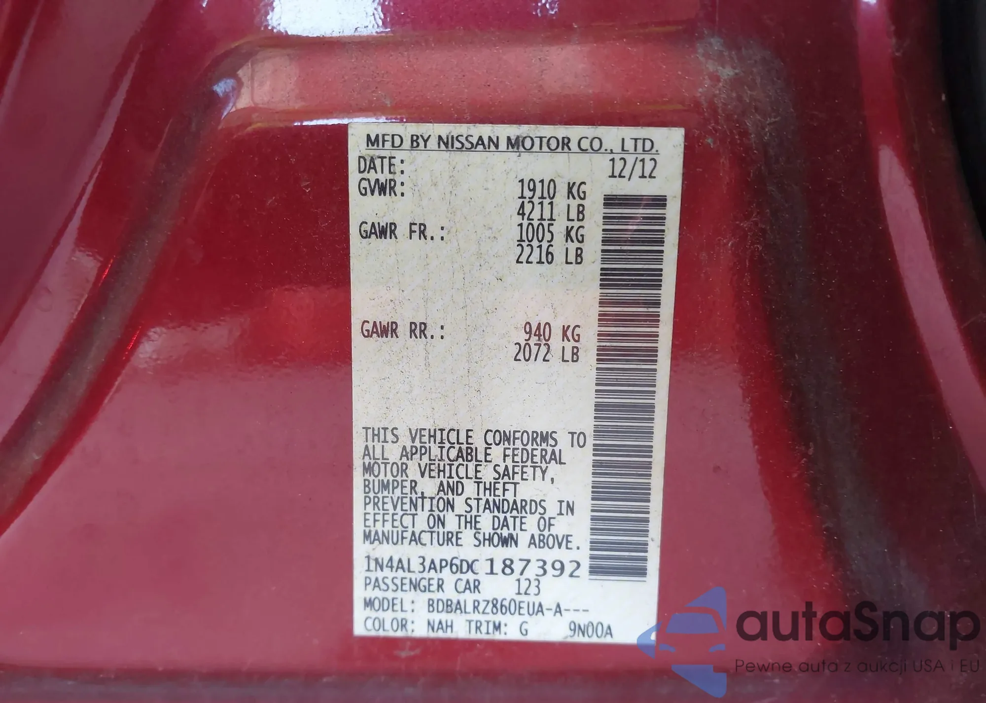 VIN: 1N4AL3AP6DC187392