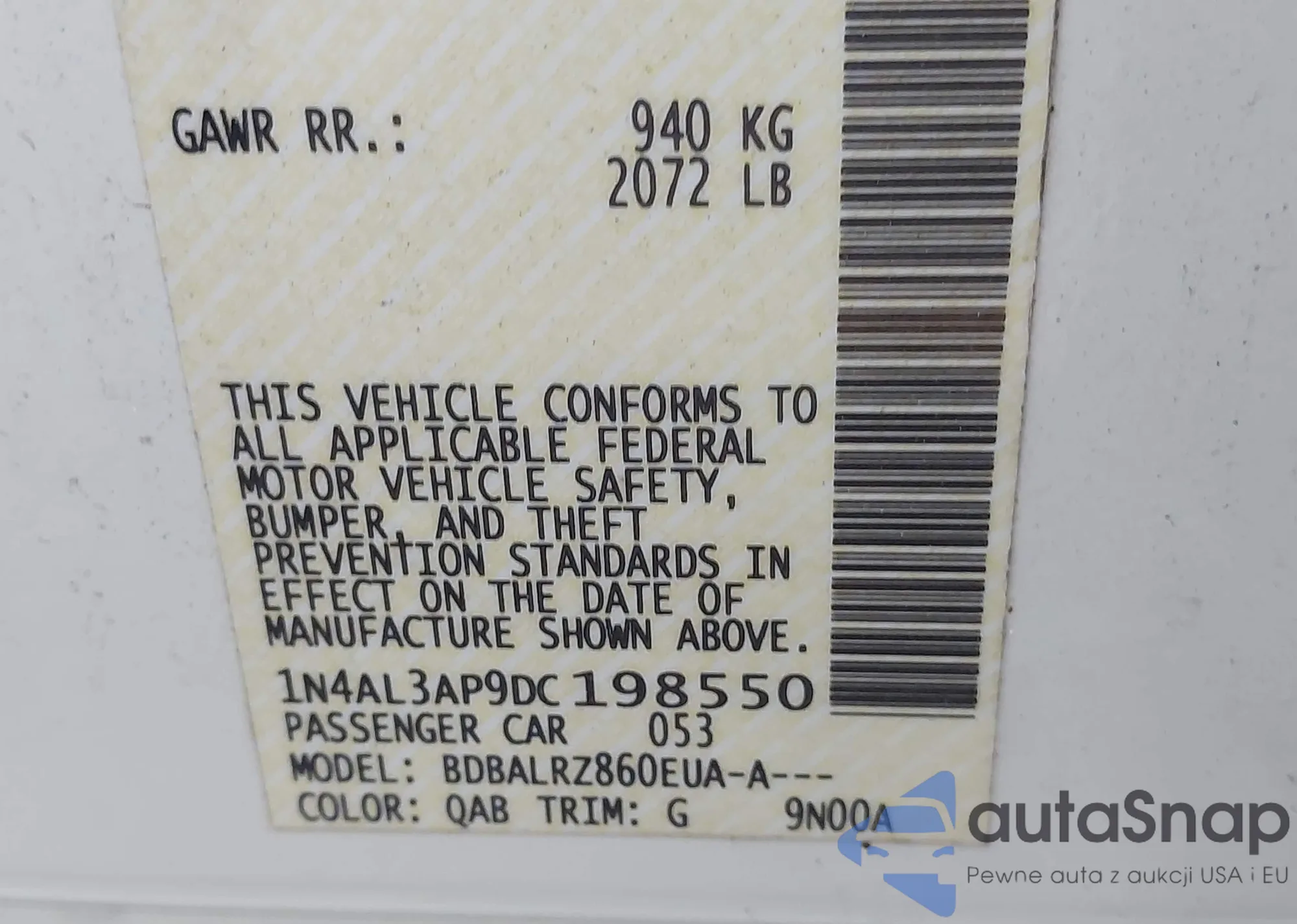 VIN: 1N4AL3AP9DC198550