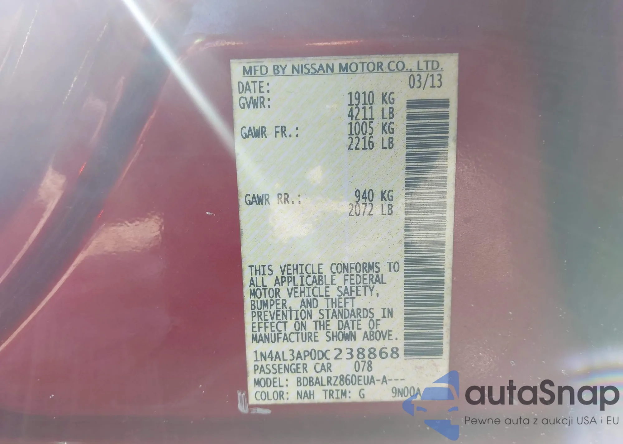 • VIN: 1N4AL3AP0DC238868