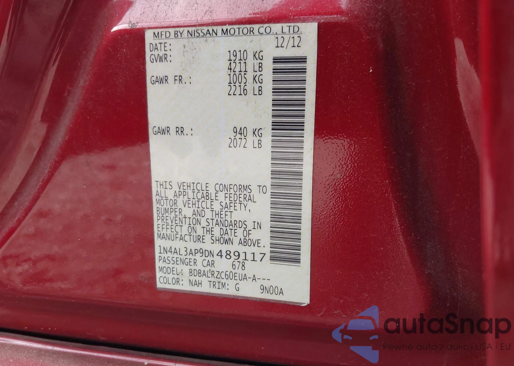 VIN: 1N4AL3AP9DN489117