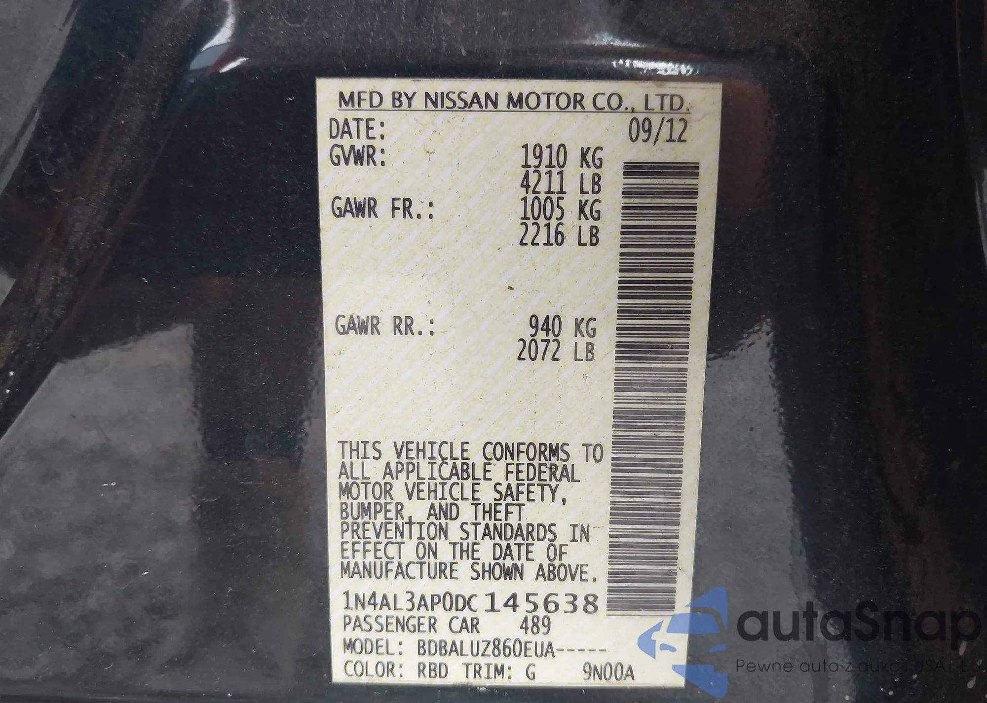 VIN: 1N4AL3AP0DC145638