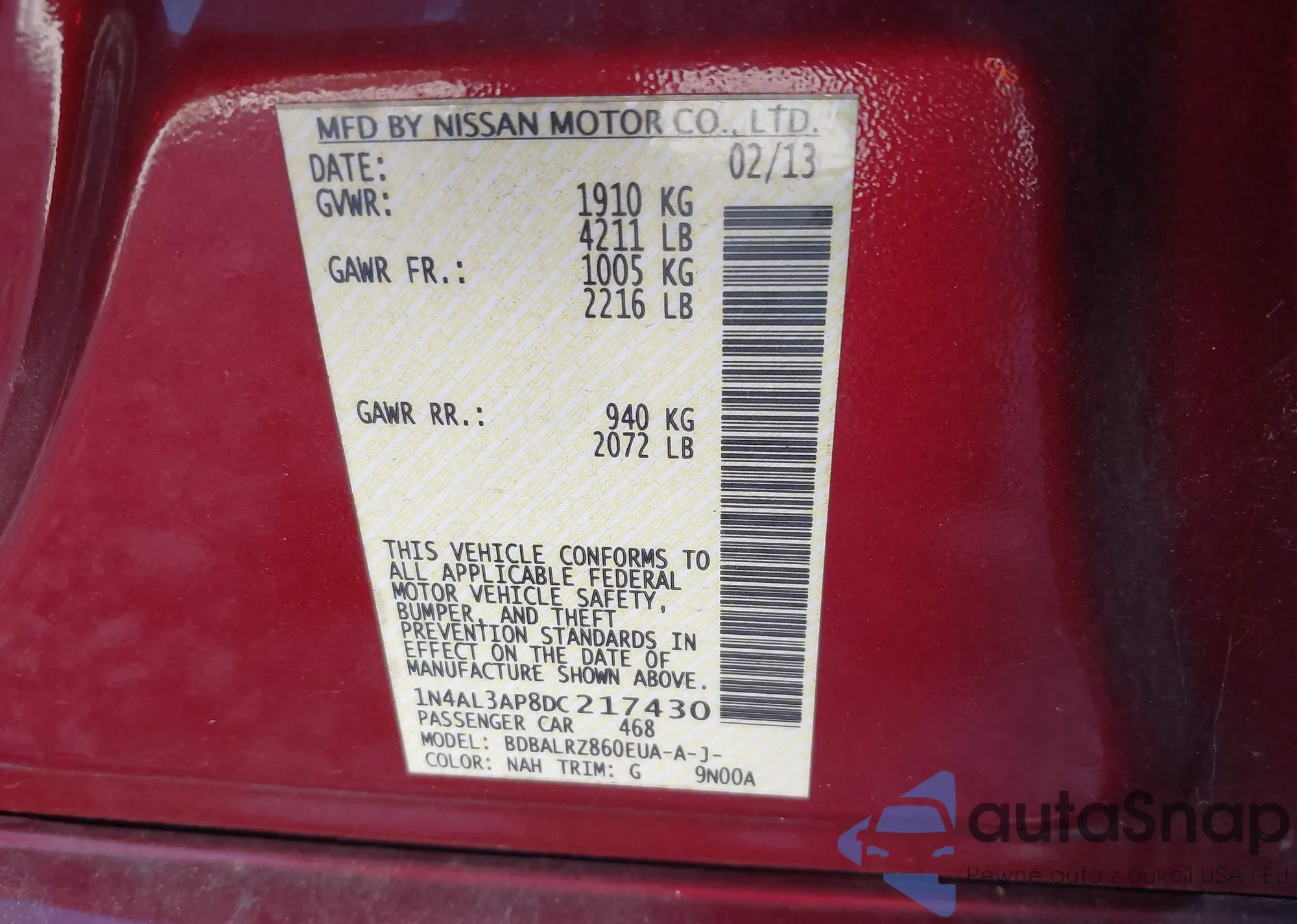VIN: 1N4AL3AP8DC217430