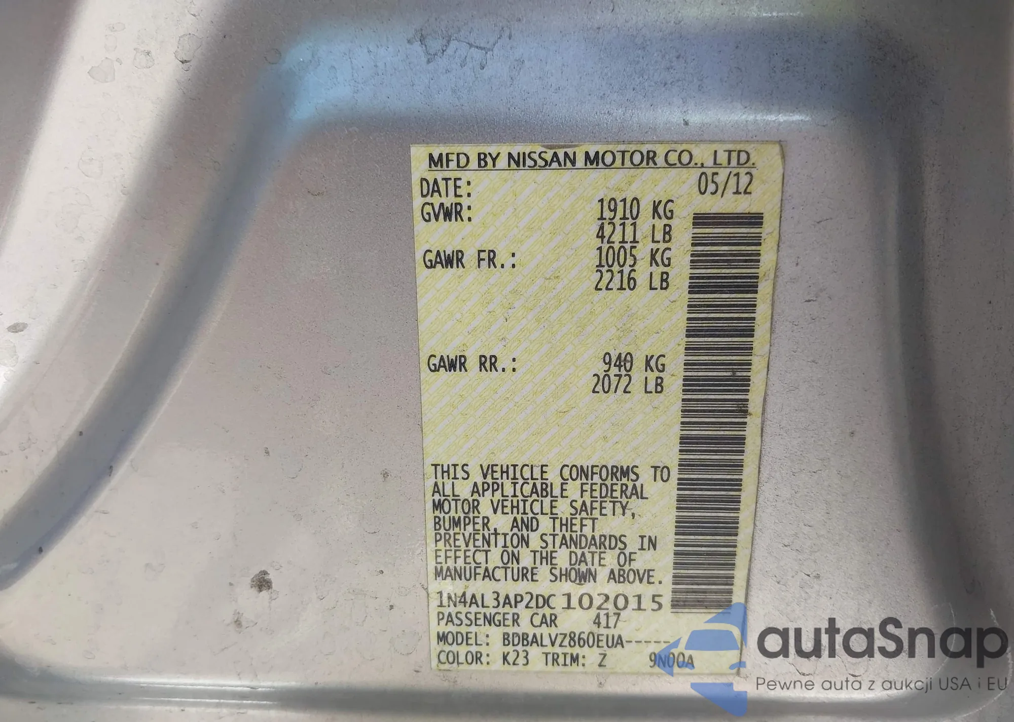 VIN: 1N4AL3AP2DC102015