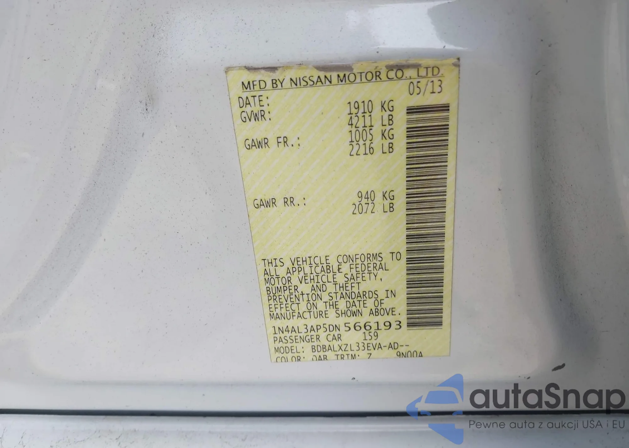 • VIN: 1N4AL3AP5DN566193