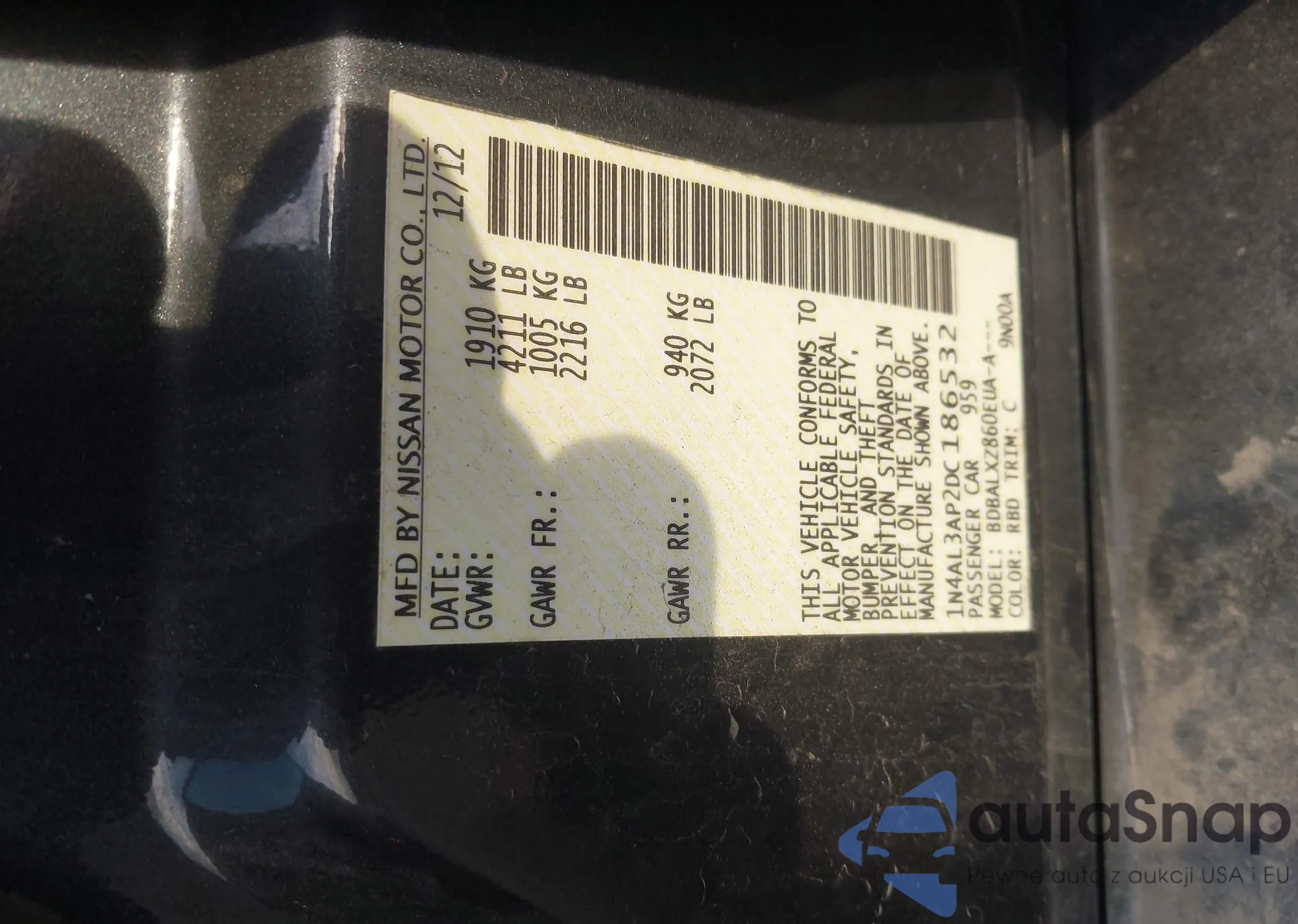 VIN: 1N4AL3AP2DC186532