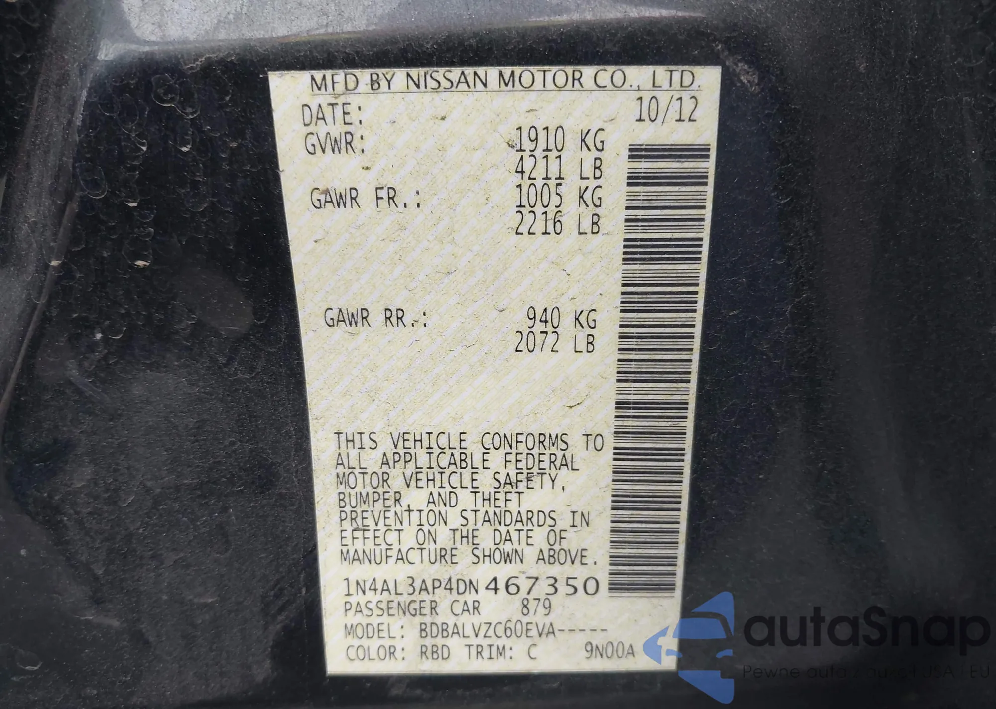 VIN: 1N4AL3AP4DN467350