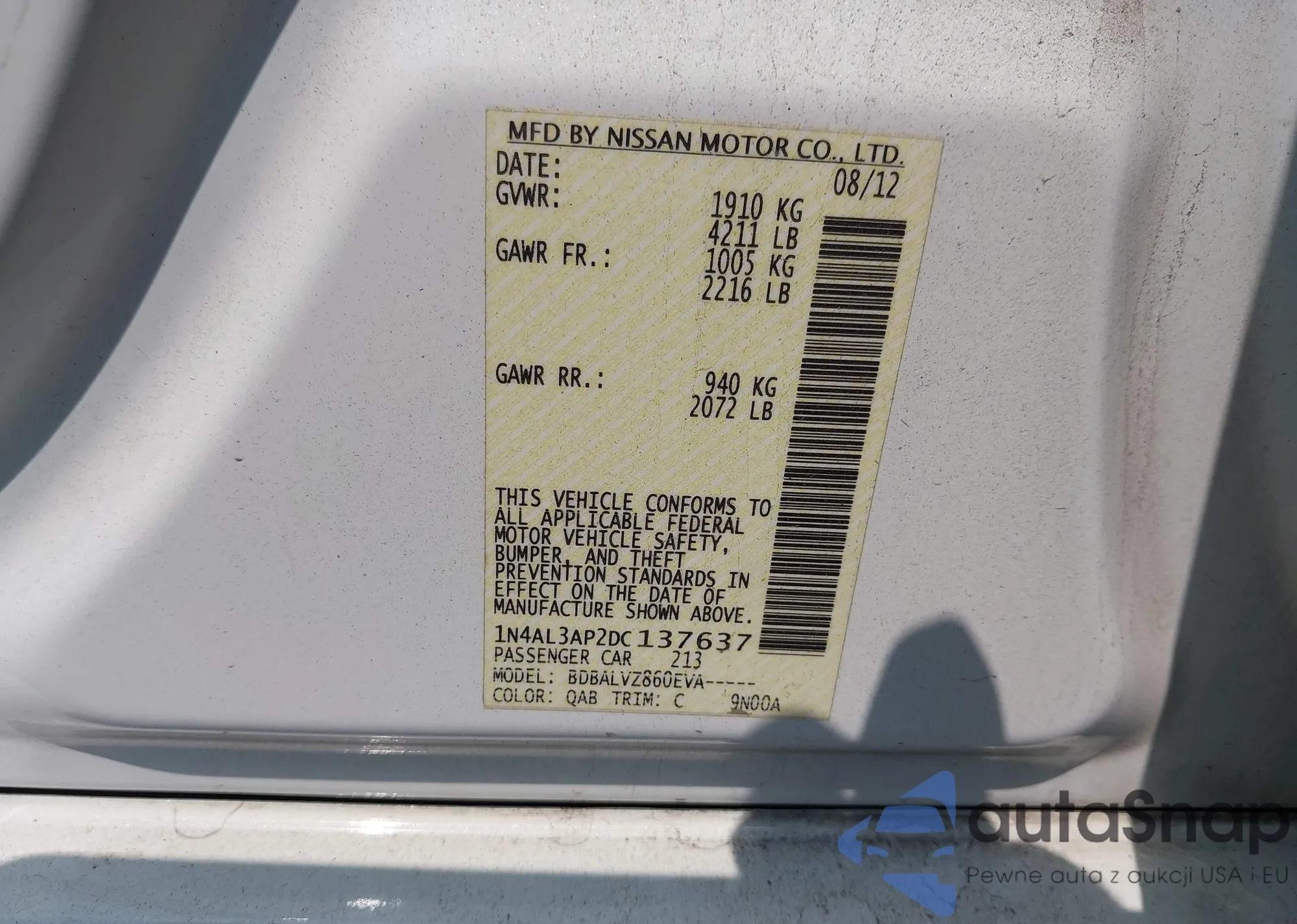 VIN: 1N4AL3AP2DC137637