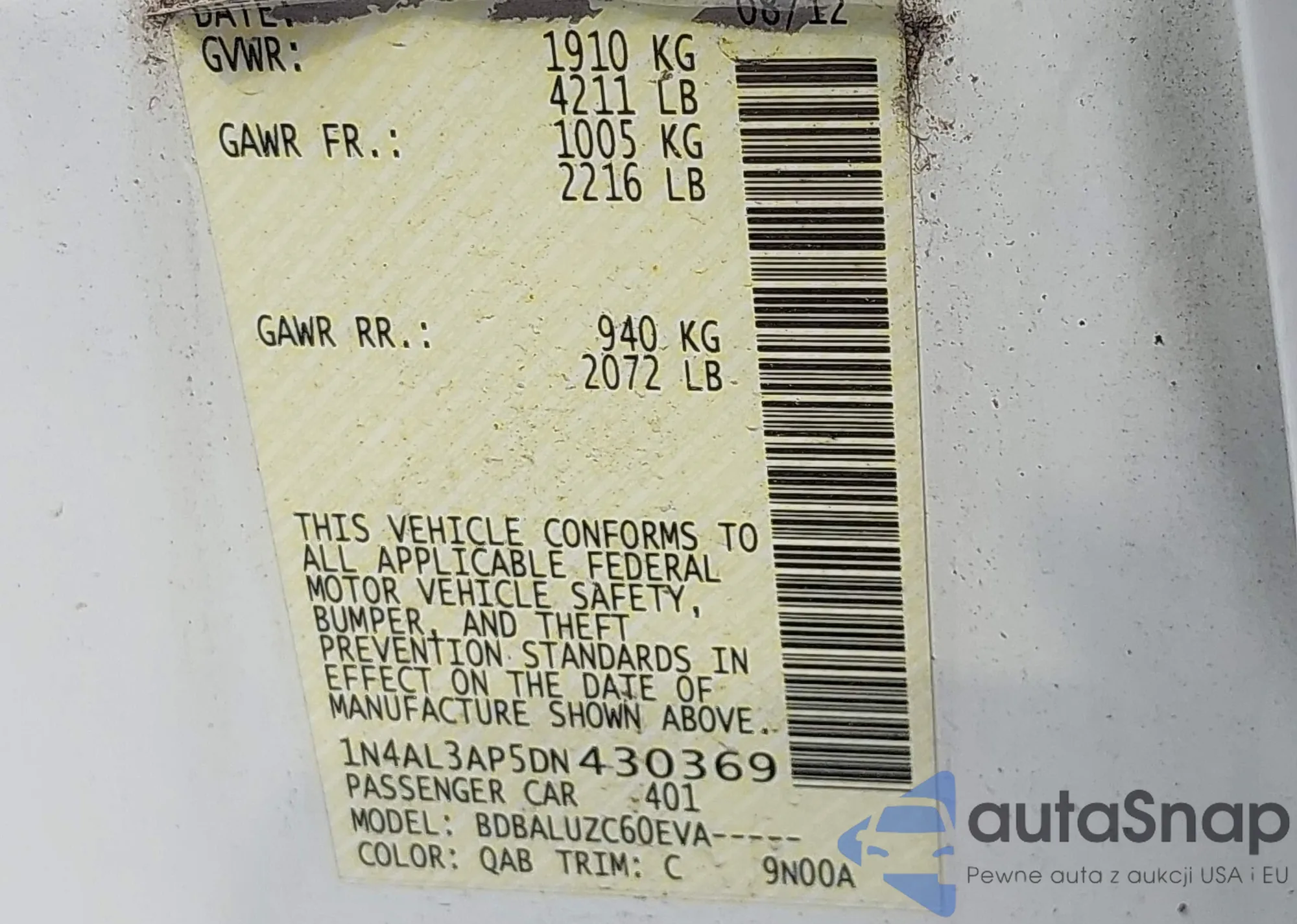 VIN: 1N4AL3AP5DN430369