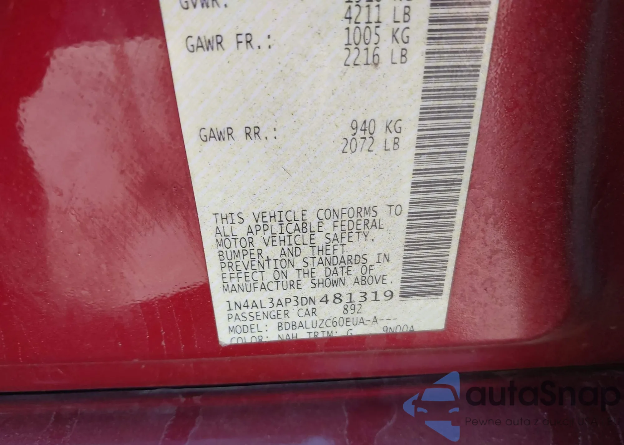 VIN: 1N4AL3AP3DN481319