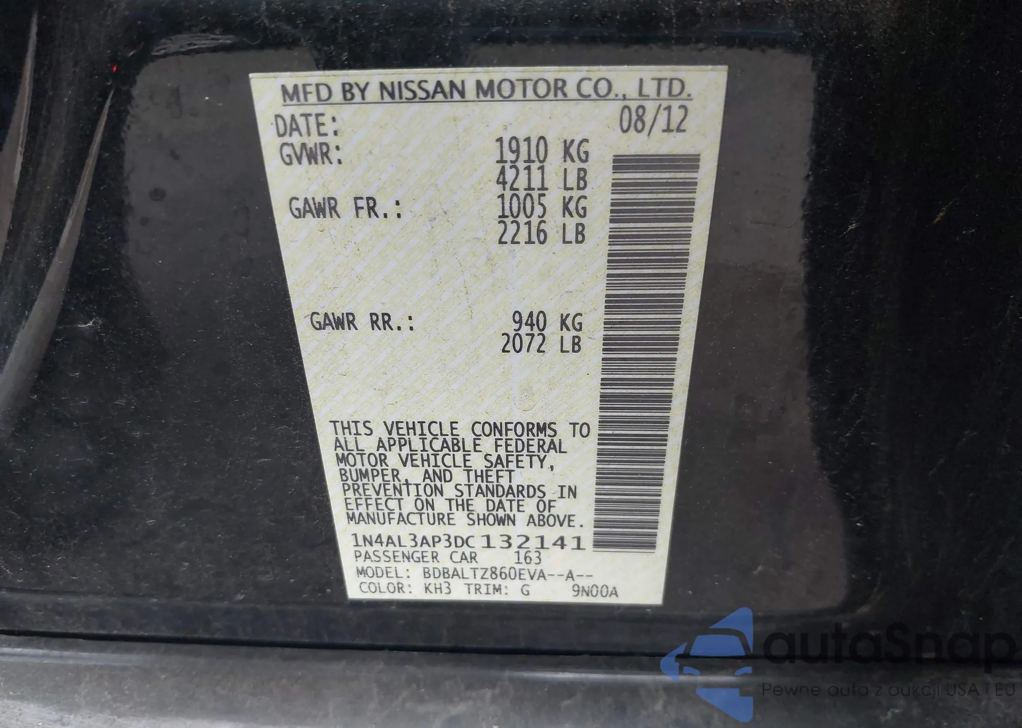 VIN: 1N4AL3AP3DC132141