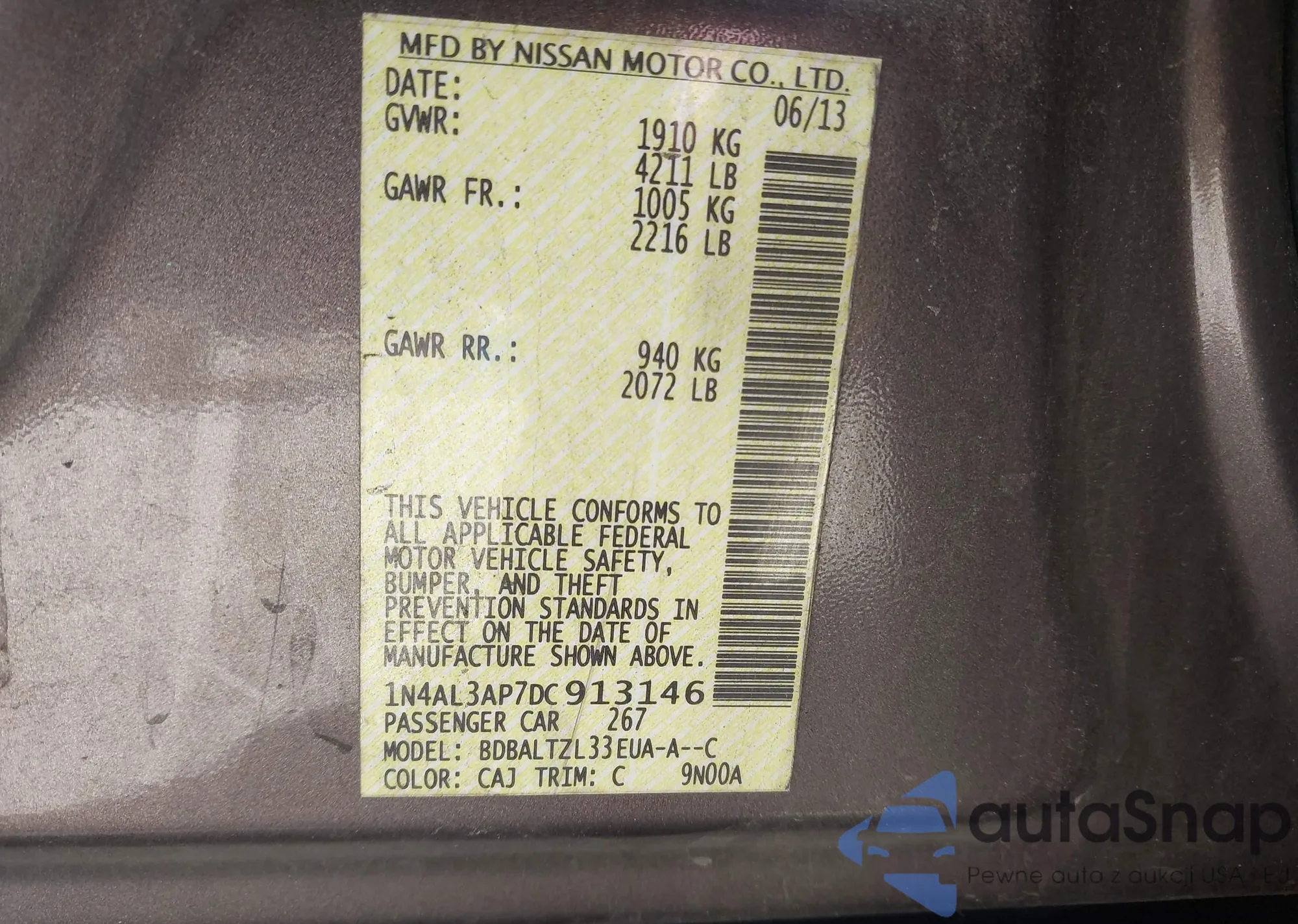 VIN: 1N4AL3AP7DC913146