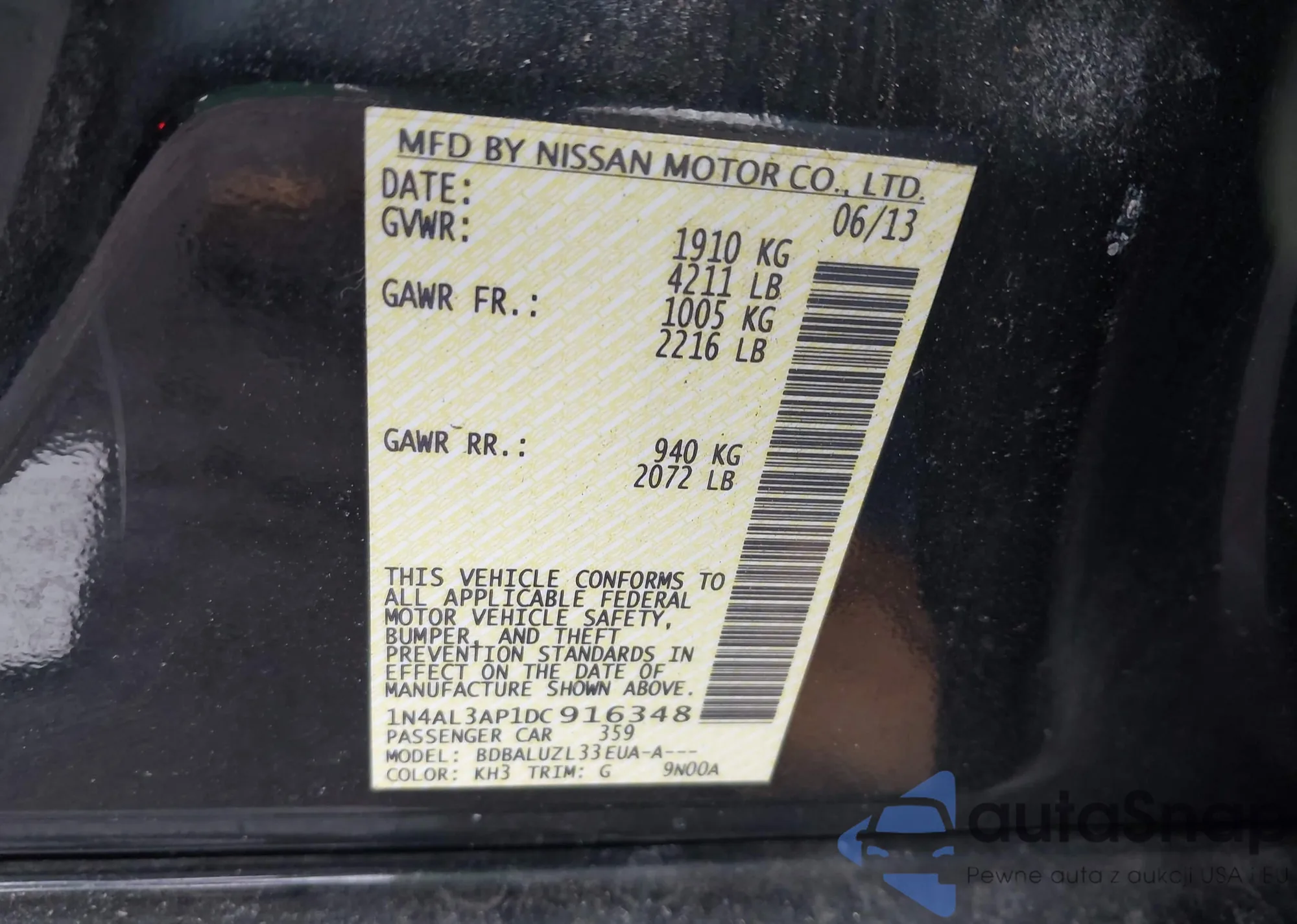 VIN: 1N4AL3AP1DC916348