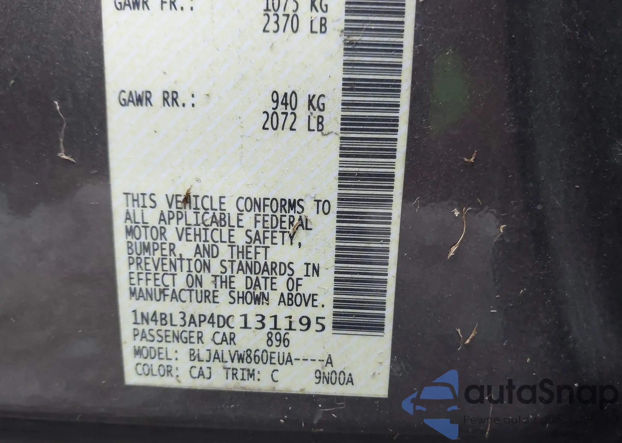 VIN: 1N4BL3AP4DC131195