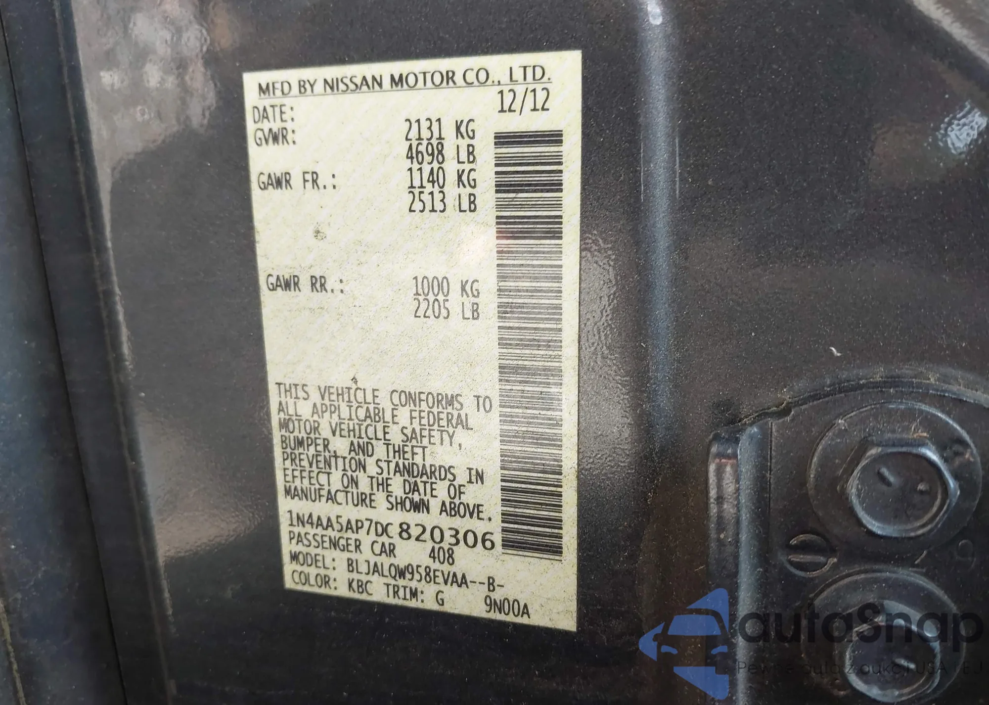 VIN: 1N4AA5AP7DC820306