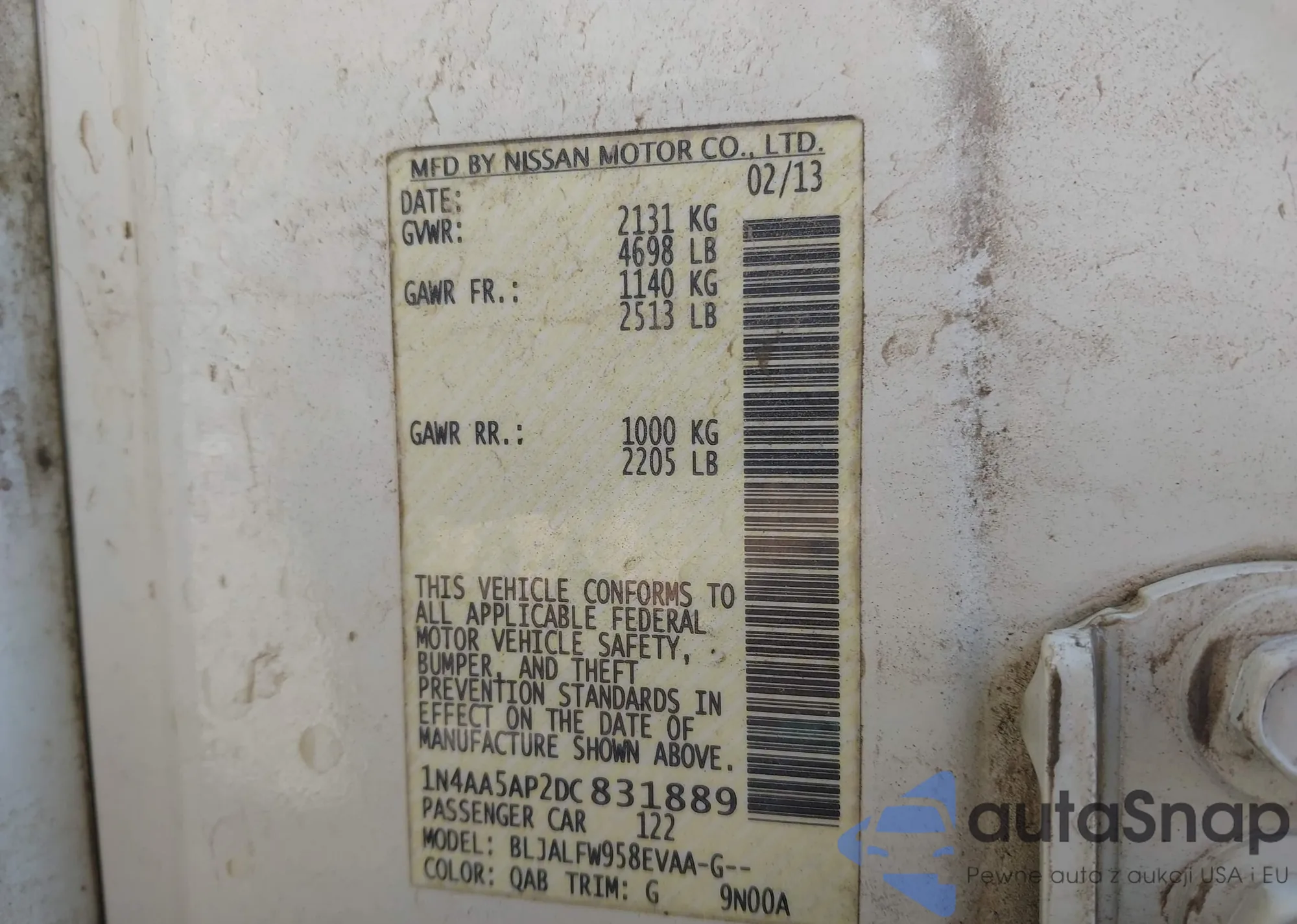 VIN: 1N4AA5AP2DC831889