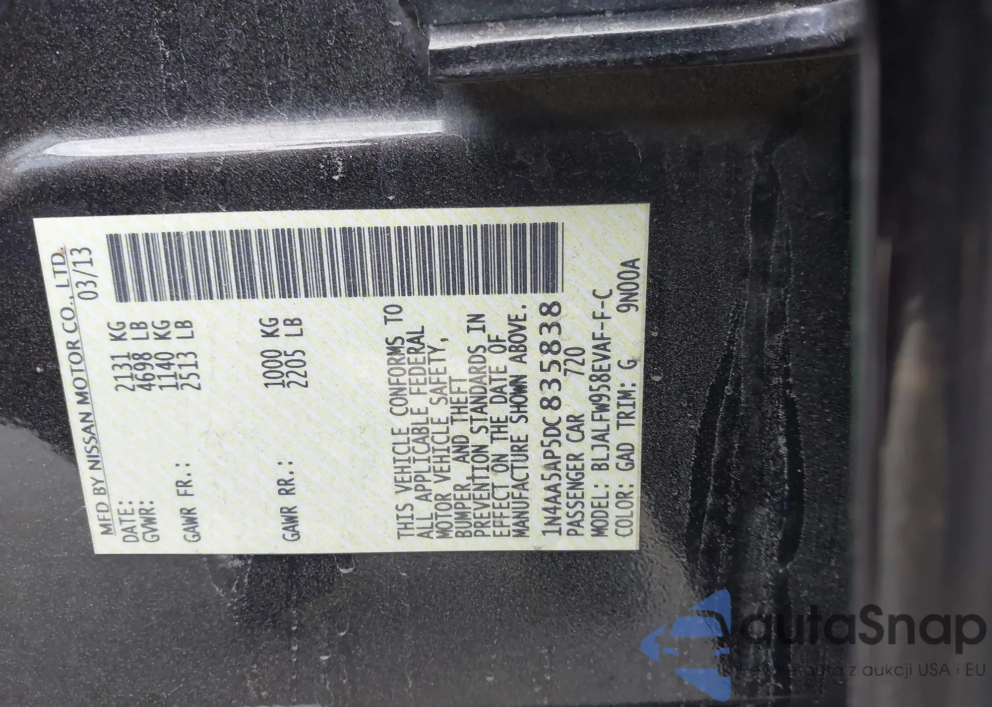• VIN: 1N4AA5AP5DC835838