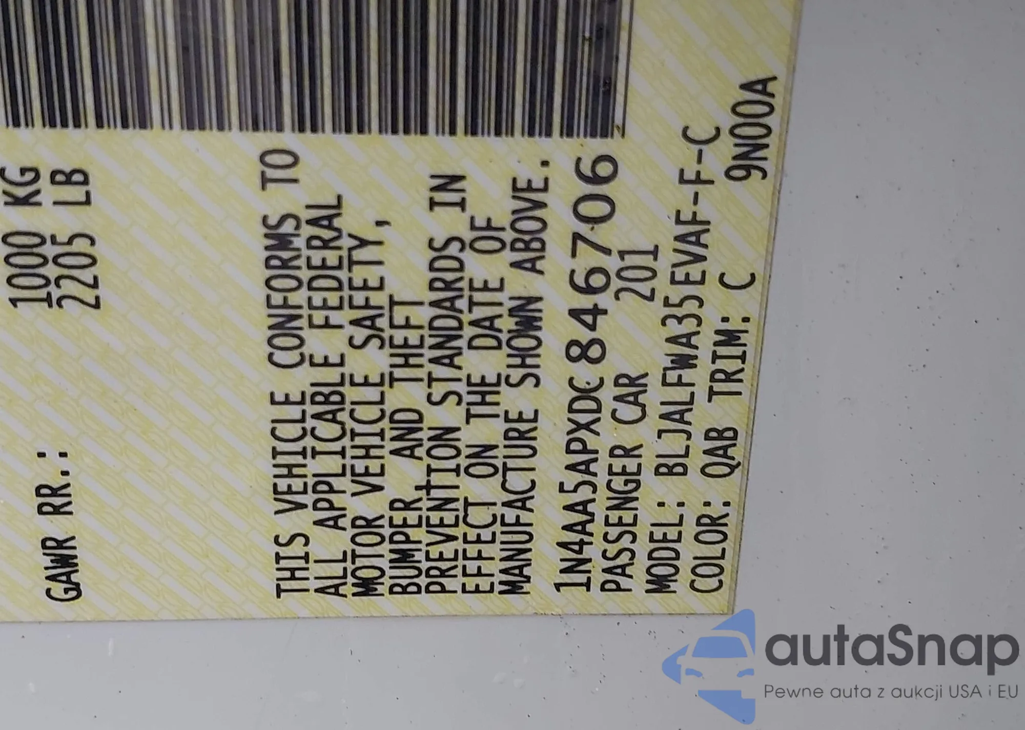 VIN: 1N4AA5APXDC846706