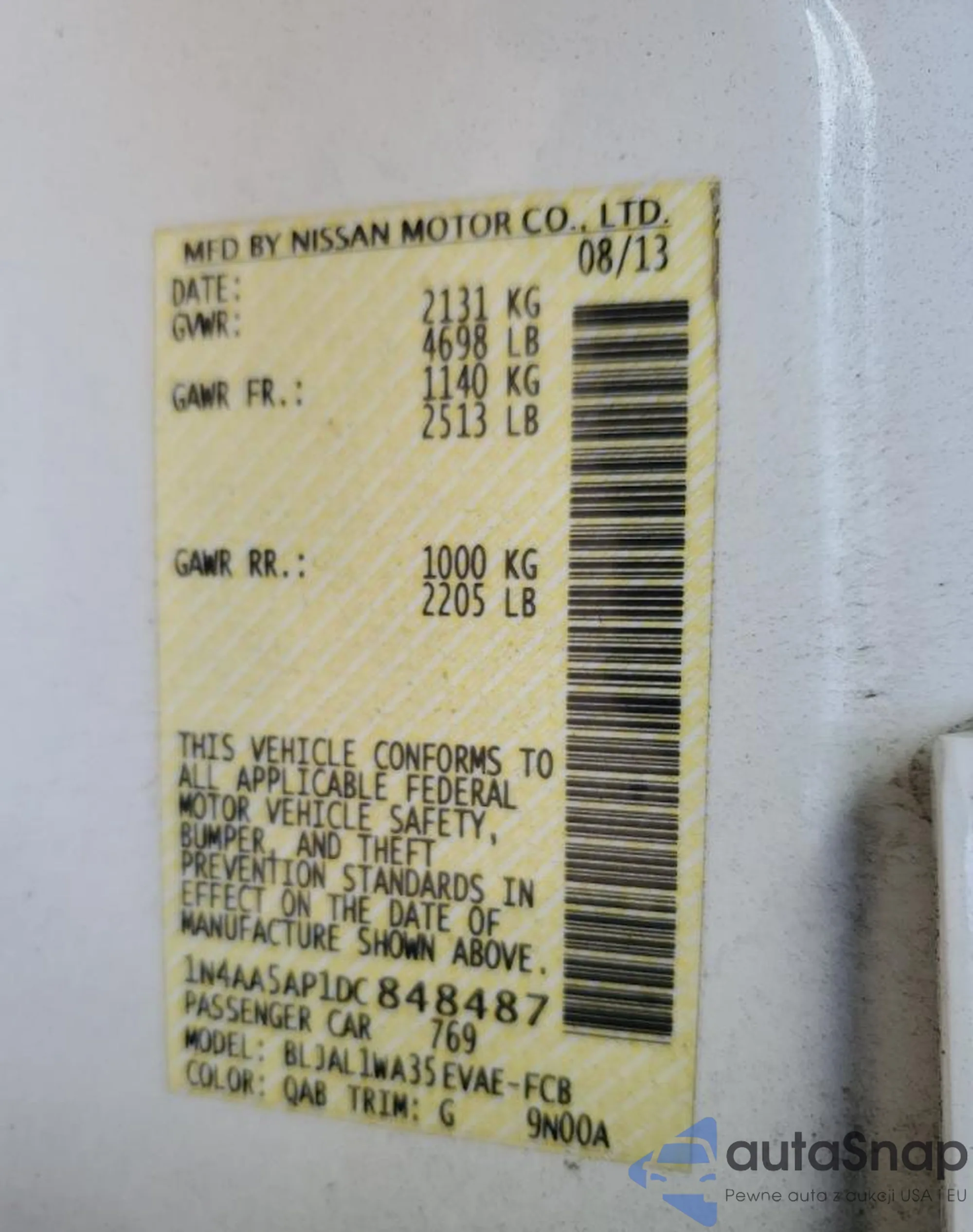 VIN: 1N4AA5AP1DC848487