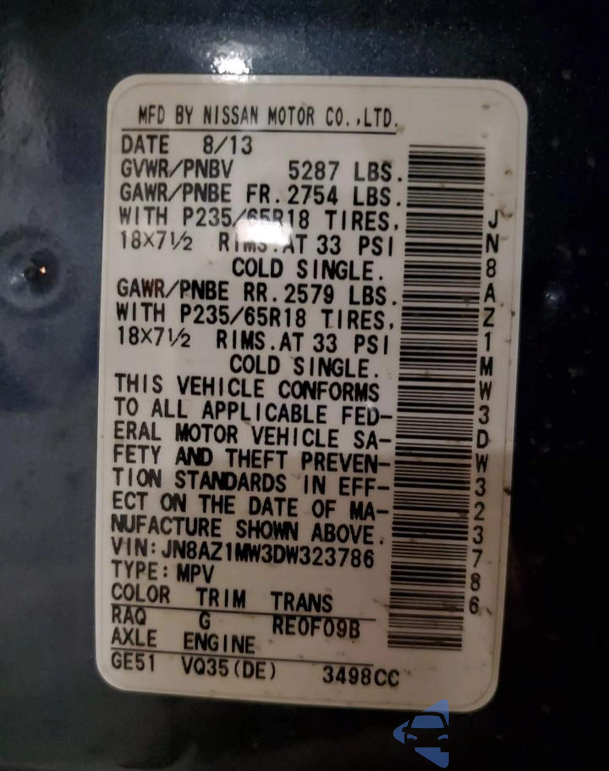The car Nissan Murano 2013 (VIN JN8AZ1MW3DW323786) has already been auctioned 1 times and/or is sold by an unverified seller. We recommend checking the Carfax report and confirming registration possibilities before purchase.