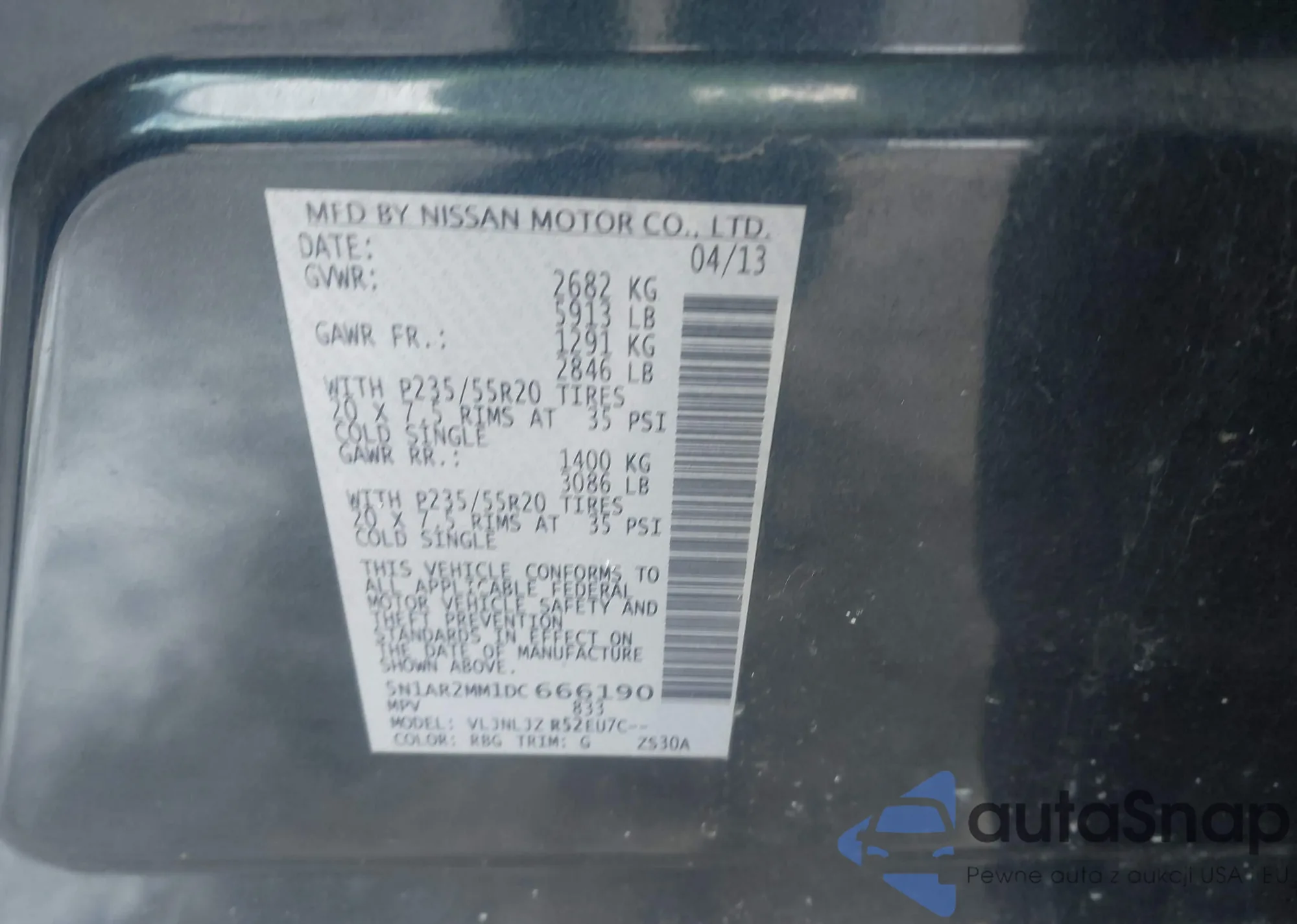 VIN: 5N1AR2MM1DC666190