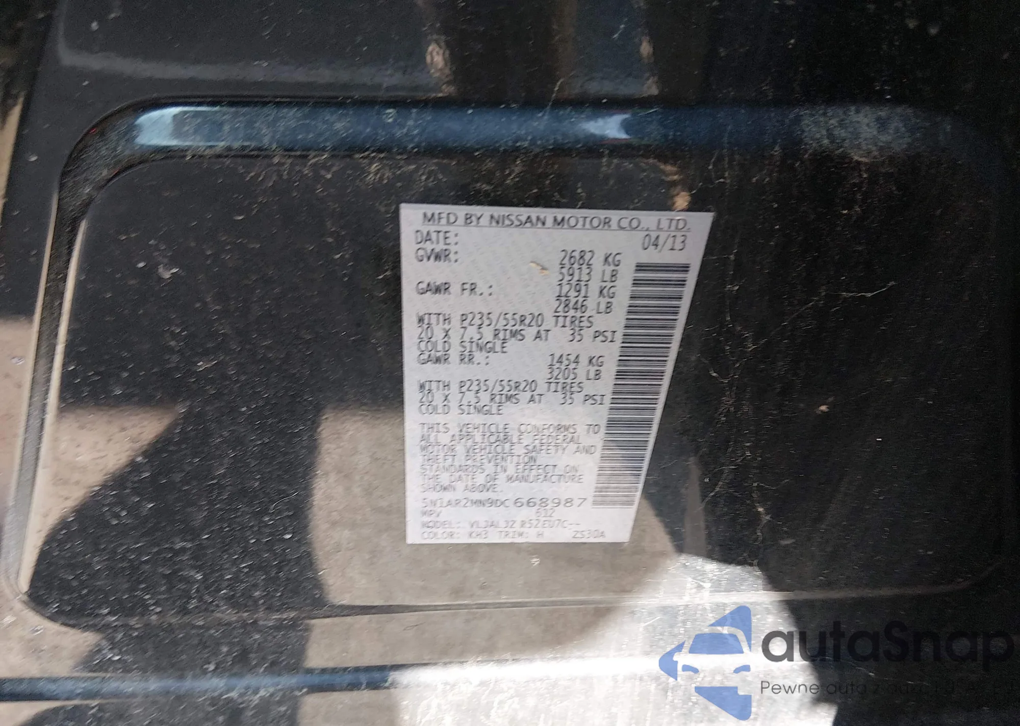The car Nissan Pathfinder 2013 (VIN 5N1AR2MN9DC668987) is sold by an unverified seller. We recommend checking the Carfax report and confirming registration possibilities before purchase.