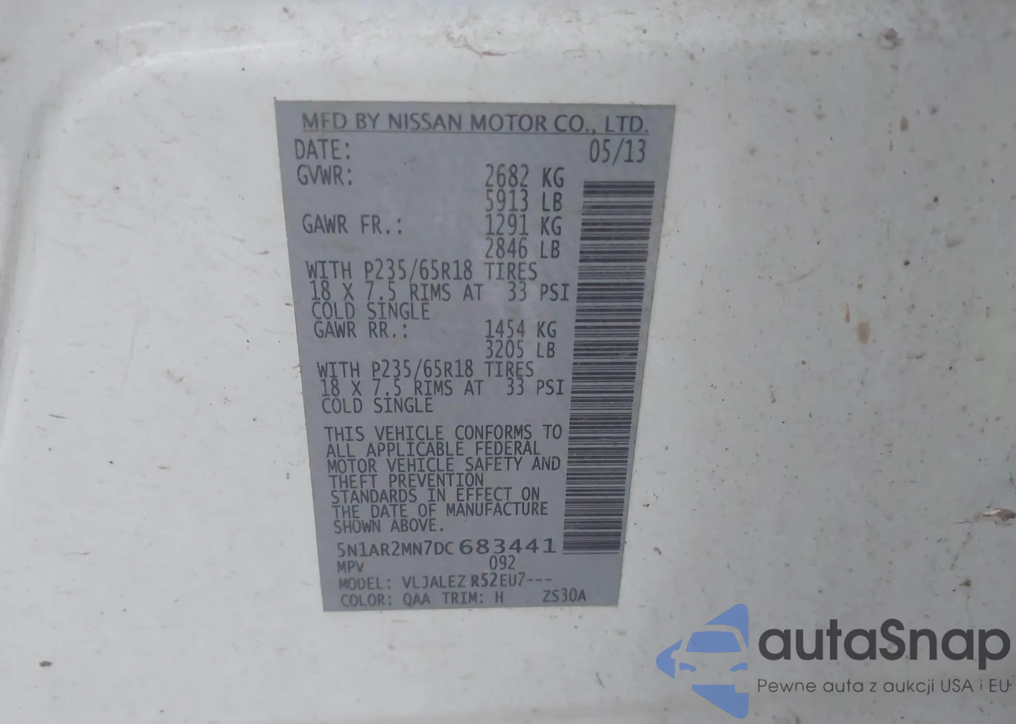 VIN: 5N1AR2MN7DC683441