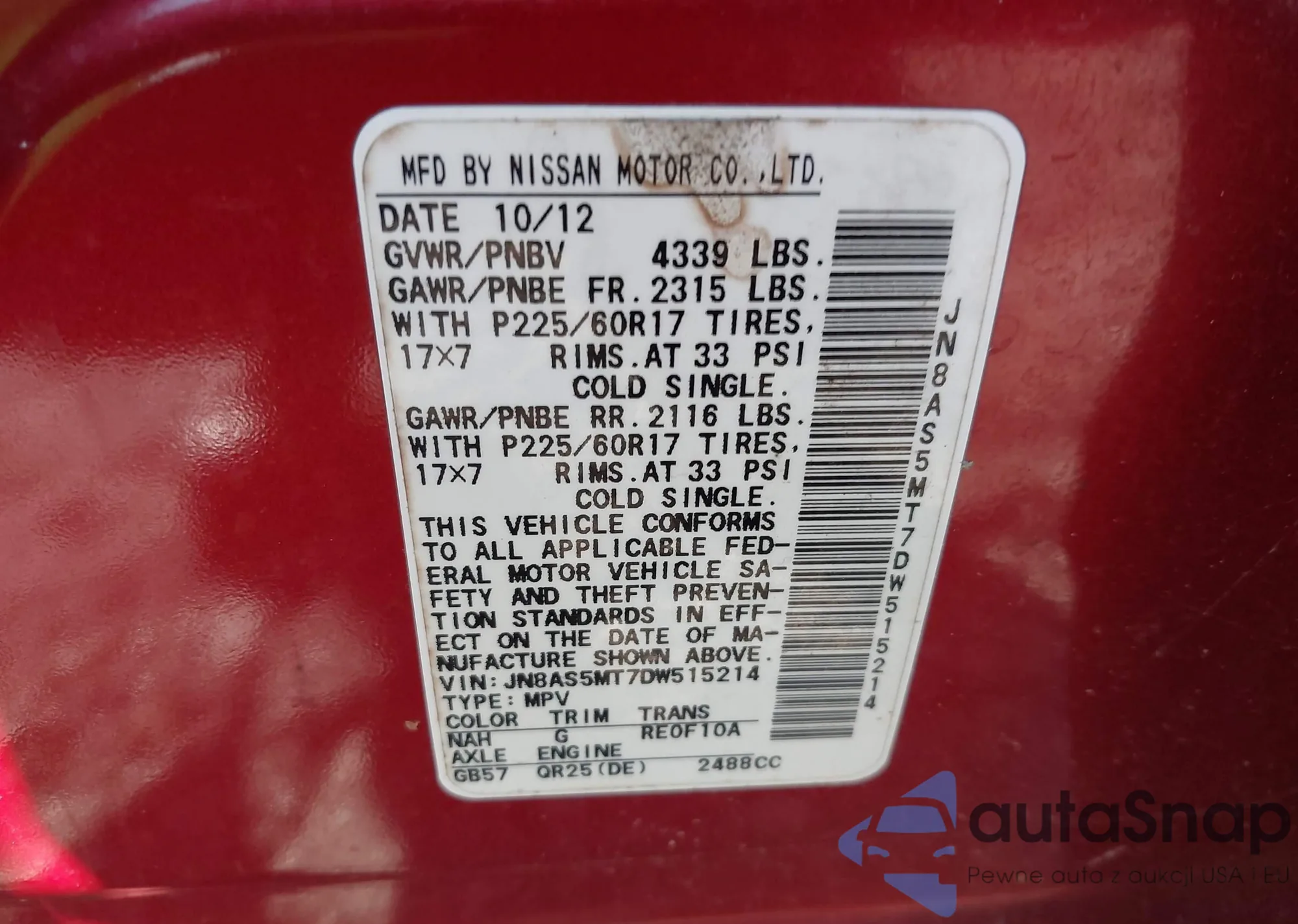 VIN: JN8AS5MT7DW515214